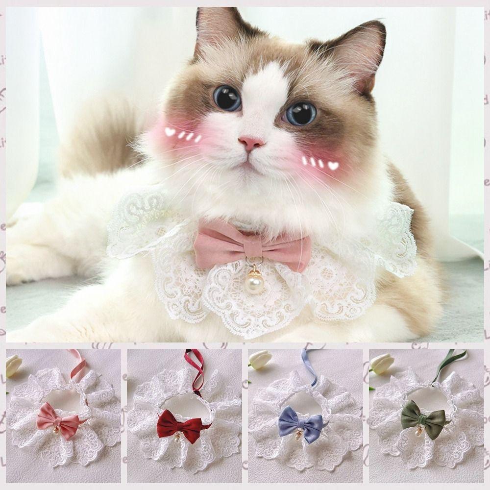 Beautiful Cat Lace Bows Collar Silks Satins/Pearl Dog Pearl Bows Necklace Photograph