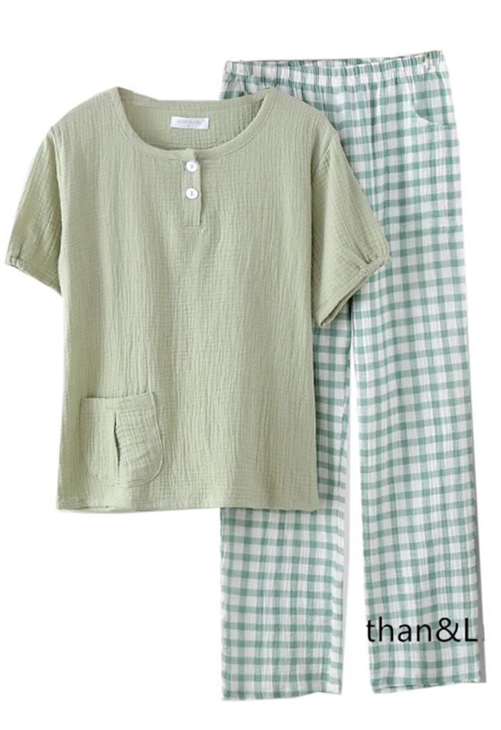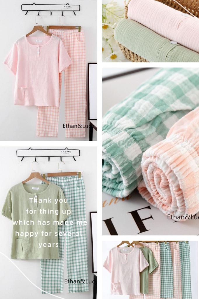 Марля Мягкая и Короткая Милая Пижама Легкая Женская Весенне-Летняя, 100% Хлопок, Удобная, Рукав, Комплект, Дышащая, Прохладная, Влагоотводящая,
