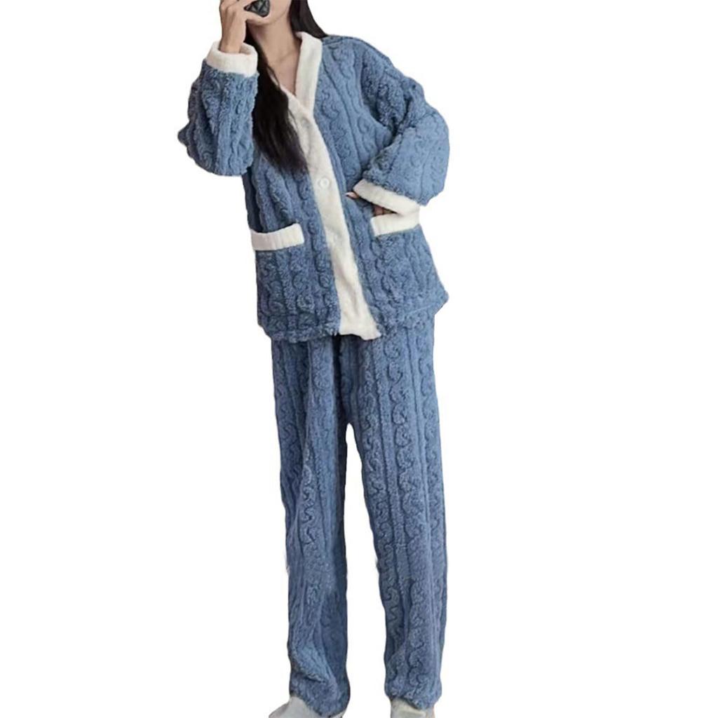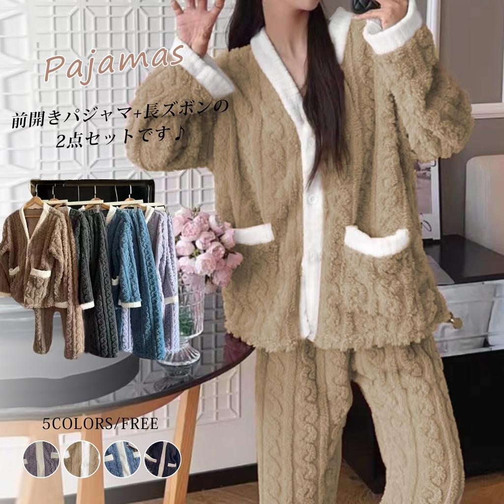Пушистый пижамный топ и длинные и с контрастным открытым милый теплый и идеально для и [7-livehouse] Женский комплект, Брюки, Рукава, Топ, Цвета, Перед,