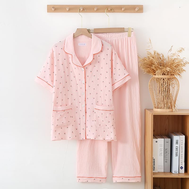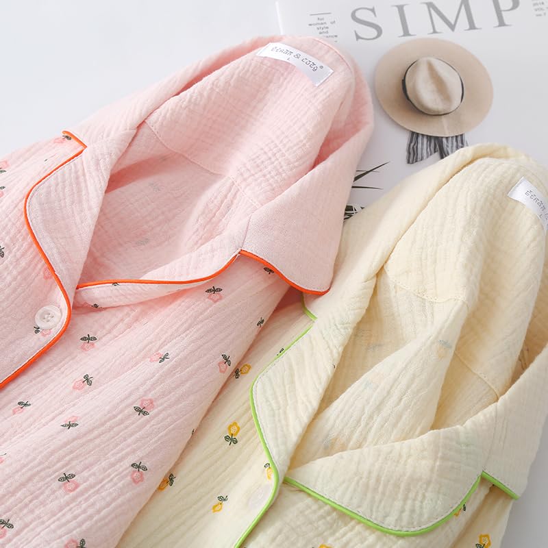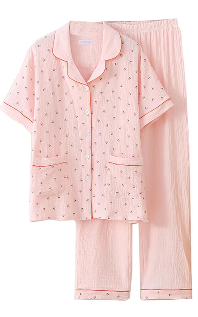 Изготовленная из 100% хлопка, эта пижама обладает высокой впитываемостью и воздухопроницаемостью, быстро впитывает пот и предотвращает духоту.. Для тех, кто сильно потеет ночью, они мгновенно впитывают пот, сохраняя вас сухими и сухими до рассвета.. Они становятся мягче с каждой стиркой, и чем дольше вы их носите, тем лучше становится материал.. Наслаждайтесь спокойным ночным сном в комфорте 100% хлопка. Дизайн из двойной марли состоит из двух слоев тонкой хлопчатобумажной марли, создающих воздушную прослойку между слоями, что делает их чрезвычайно дышащими и идеальными для после ванны.. Они хорошо впитывают пот, когда жарко, и обеспечивают пушистое тепло, когда прохладно.. Они идеально подходят для всех сезонов, от весны до осени. Пижамы из марлевого зефира обеспечивают идеальный баланс воздухопроницаемости, влагопоглощения и влагоудержания, поддерживая комфортную среду внутри одежды и способствуя качественному сну.. Эта пижама дарит «счастливое новое прикосновение», которое обязательно порадует и вашу кожу, и вашу душу.. Эластичный пояс обеспечивает удобную посадку, не стесняя движений.. Наслаждайтесь стильным и комфортным ночным сном в этой хлопковой пижаме с застежкой спереди.. У него большой карман, что делает его удобным для хранения мелких предметов.. У него милый, стильный дизайн, который легко надевать и снимать, а низ имеет высокую посадку и эластичный пояс для свободной посадки.