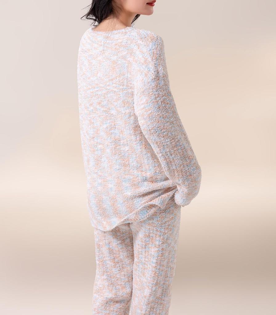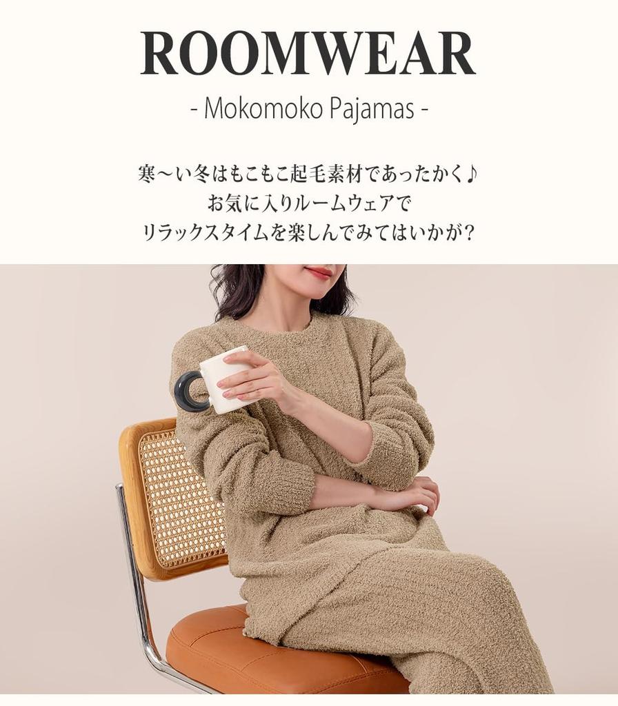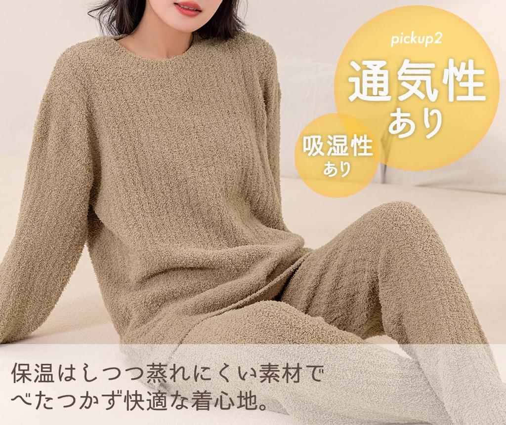 DAYCLOSET Пижама с длинным рукавом из перьевого трикотажа с рубчиками, толстая, для живота, домашняя одежда207 Бежевый x Женский комплект, Трикотаж, Теплее, Осень/Зима, (Дж. П.,