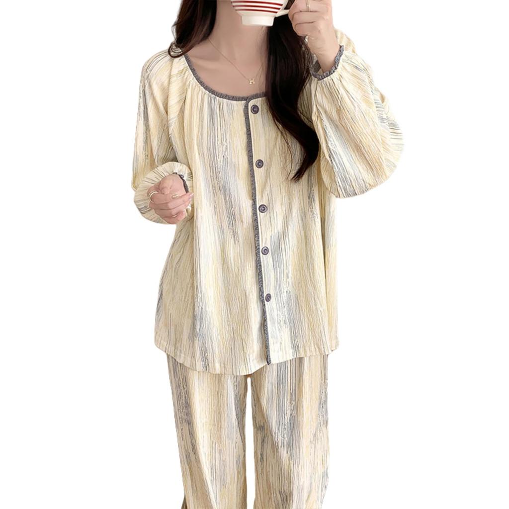 Tiernyueth Квадратный вырез Длинный рукав Цветочный Милый Легко надевать и снимать Идеально для и Зимы Женская пижама, Воротник, Застежка на пуговицах спереди, Принт,