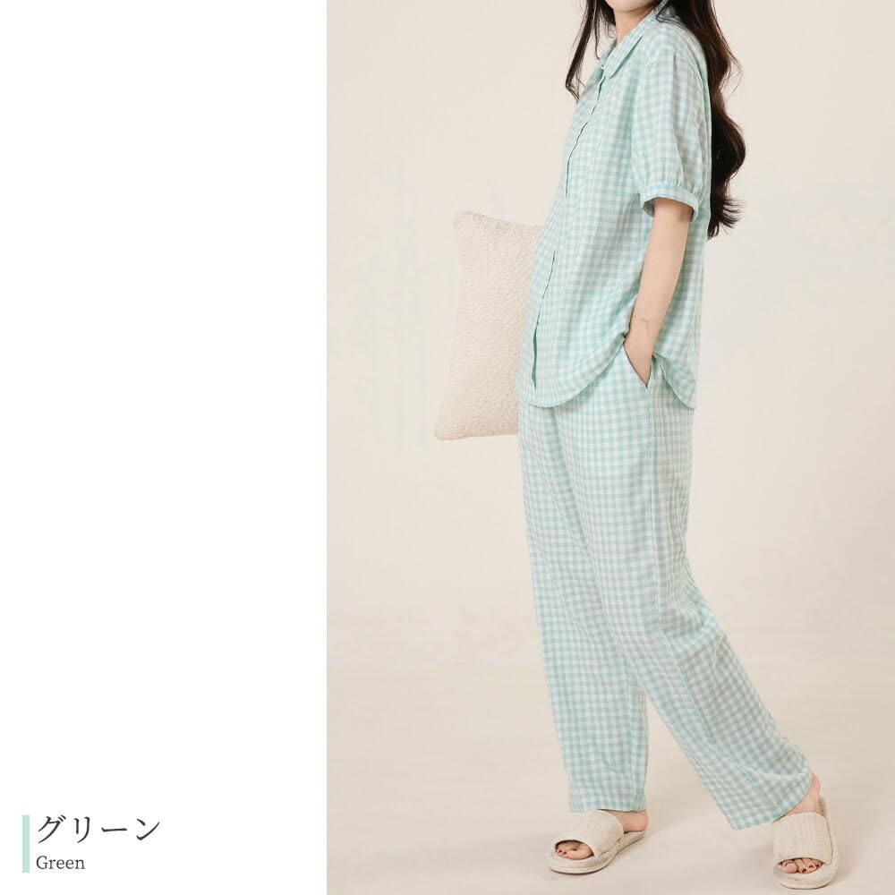 Да Семейный пижамный шорт из двойной марли в клетку Размер Зеленая клетка Женский комплект, 100% хлопок, Рукава, Узор, L,