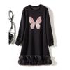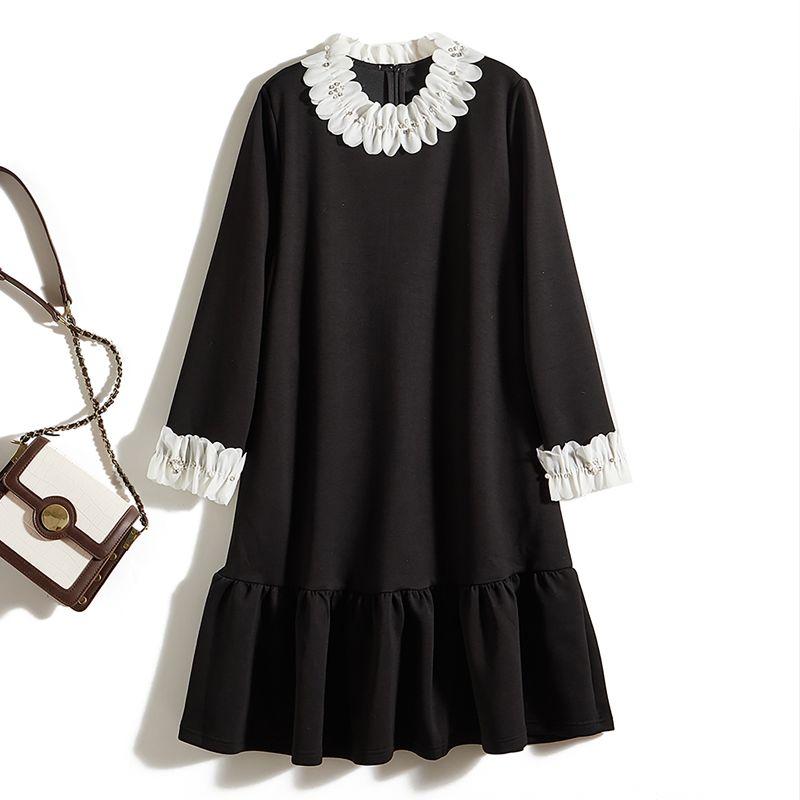 Цифровая резка Трехмерный воротник-лепесток Черное платье! Женское осенне-зимнее платье из смесового хлопка с драпировкой, оборкой «рыбий хвост», длинными рукавами и карманами