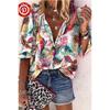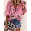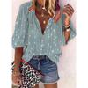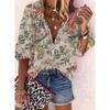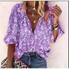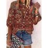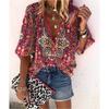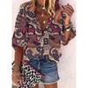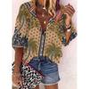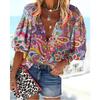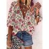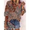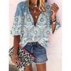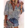 Летняя мода Стойка воротник Свободный крой На пуговицах Ретро принт Повседневные Рукава семь восьмых Женские блузки и рубашки