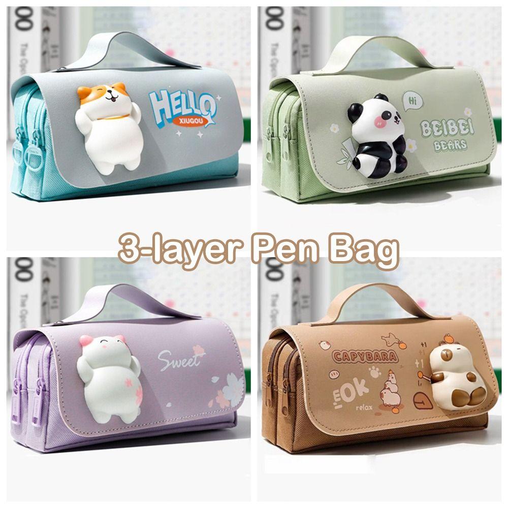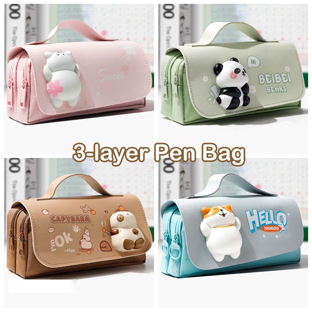 Корейская сумка для карандашей с изображением животных Большая вместительная сумка для хранения канцелярских принадлежностей Kawaii Fun Press Pen Bag Student