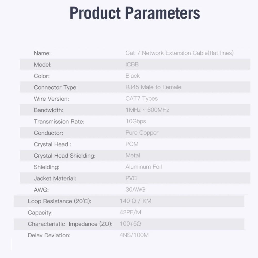 Male To Female Ethernet Extension Cord PVC CAT7 Ethernet Cable Cat 7 Extender Cable Indoor&Outdoor