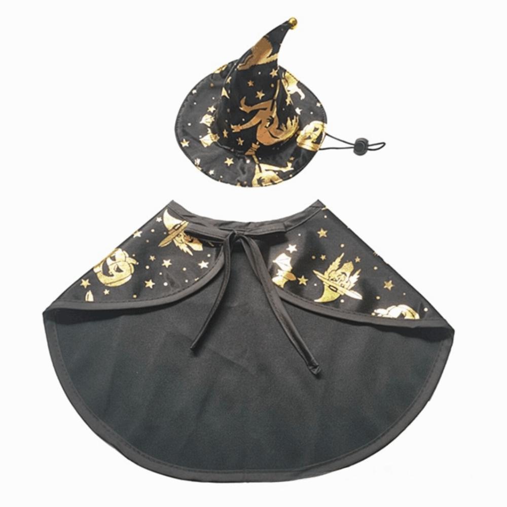 Черно-золотой набор шляпы и плаща волшебника на Хэллоуин, костюм кошки или собаки, новый костюм для косплея питомца, аксессуары для вечеринки