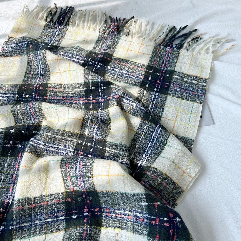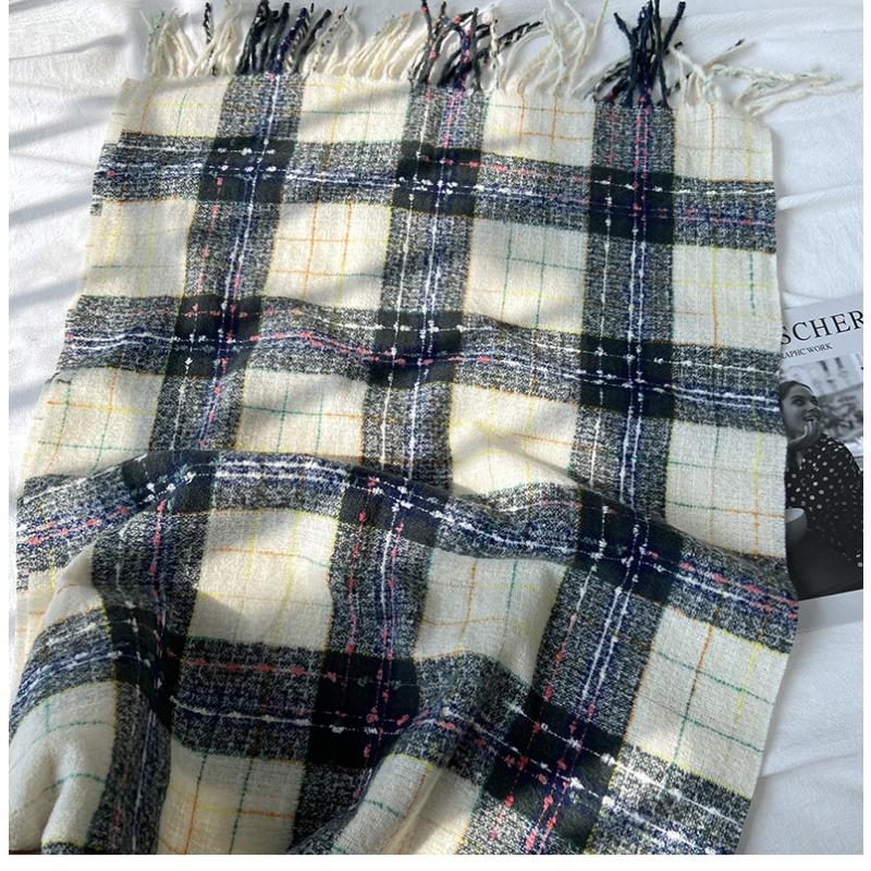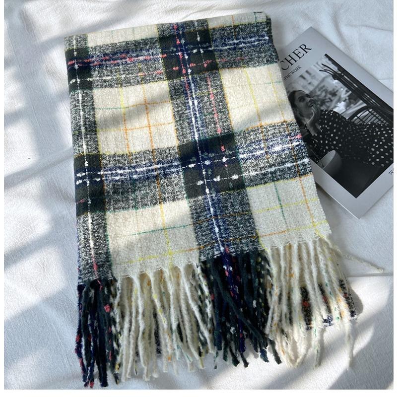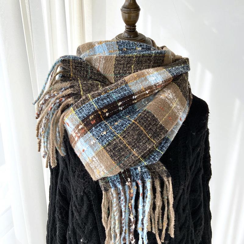 Женский клетчатый шарф - Ветрозащитный теплый зимний шарф с бахромой, многоцветные варианты для повседневных и официальных нарядов, шарф для волос