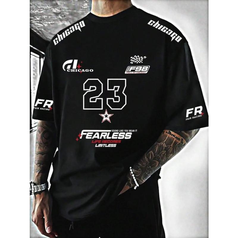Новая футболка с повседневным узором в виде букв, с коротким рукавом, спортивная футболка, унисекс, повседневная модная одежда, летняя мужская футболка для гонок