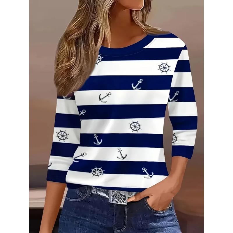 Весенне-летняя женская футболка с круглым вырезом, длинными рукавами, в полоску, в повседневном стиле, простая и элегантная — купить товар онлайн с бесплатной доставкой по всему миру!