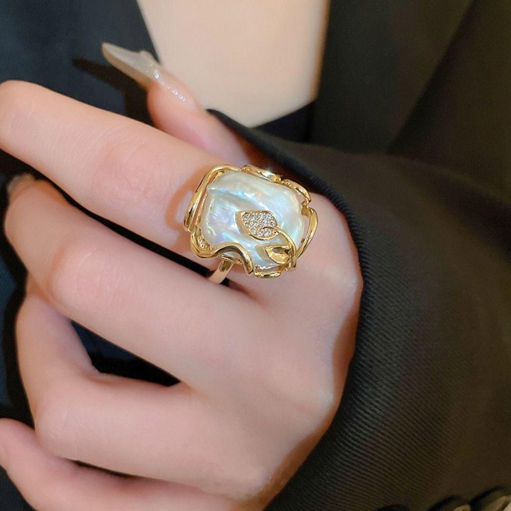 Baroque Pearl Opening Ring Rhinestone Natural Pearl Ring Creative Women's Jewelry Women