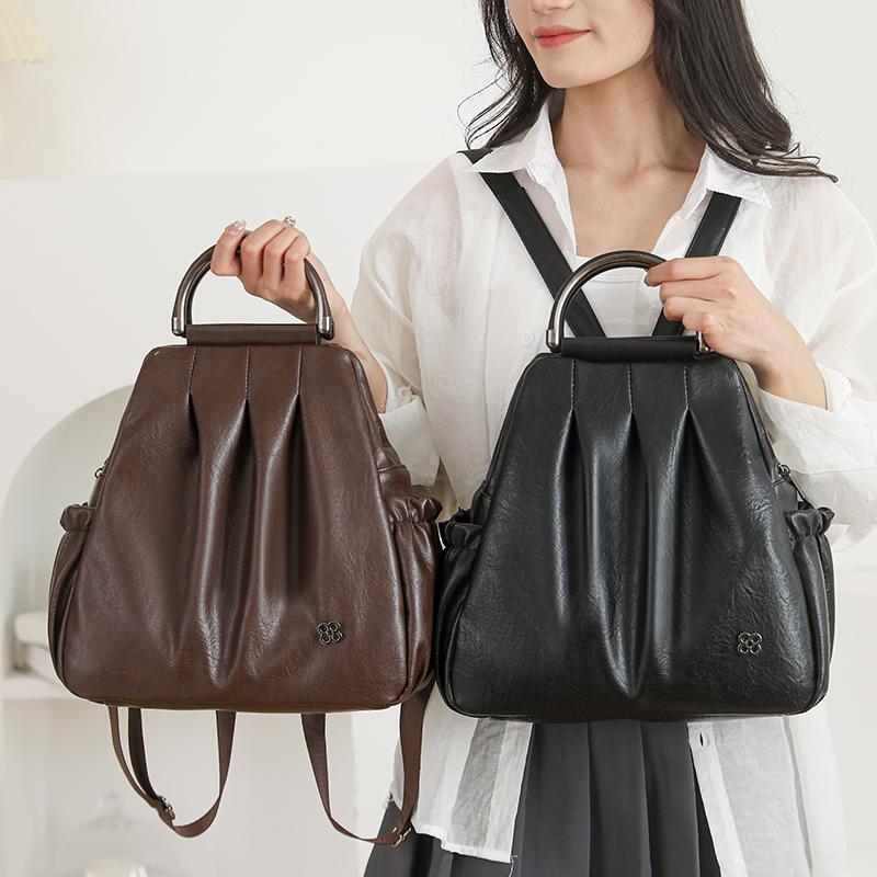 Плиссированный рюкзак с прострочкой, многофункциональная сумка-тоут, дорожная женская сумка