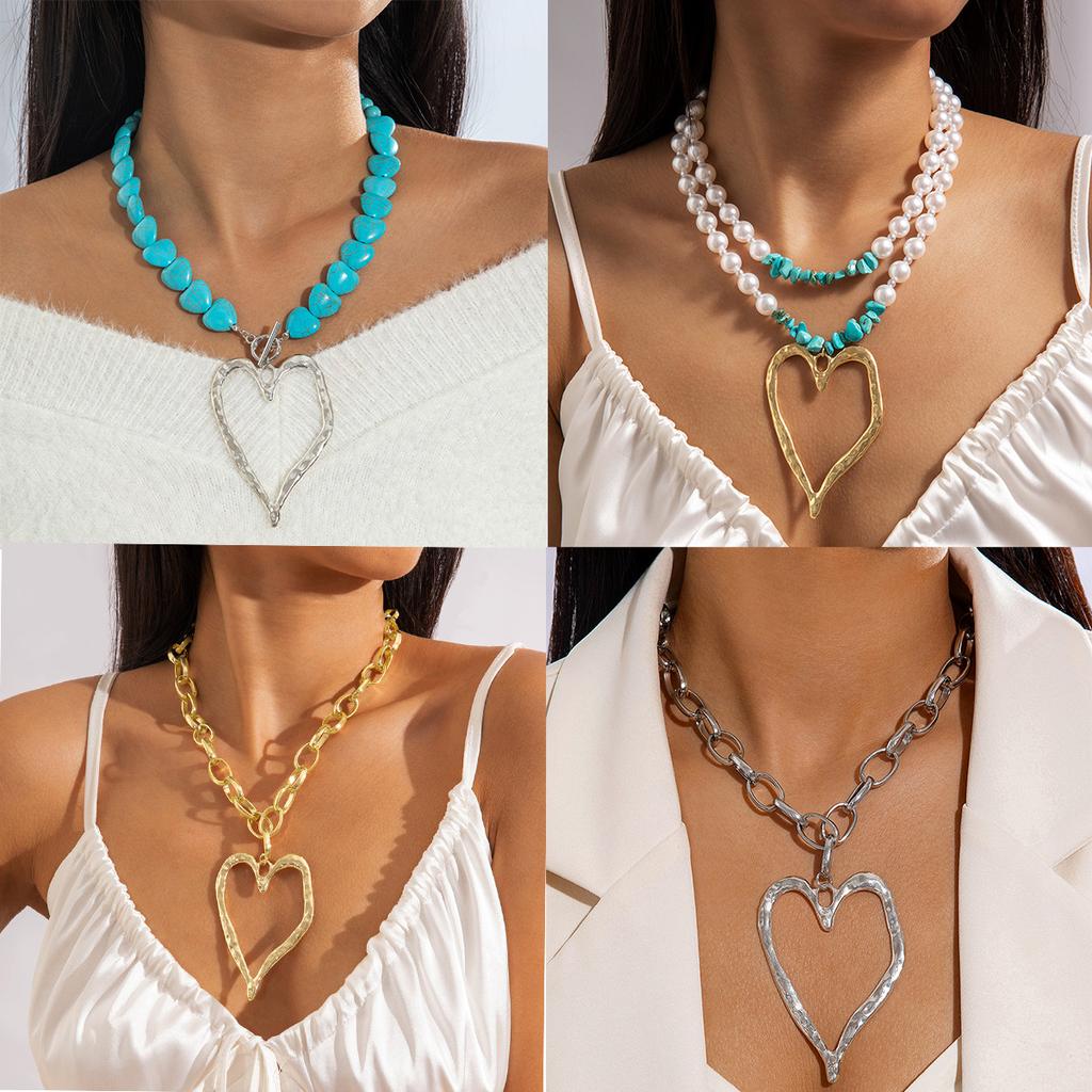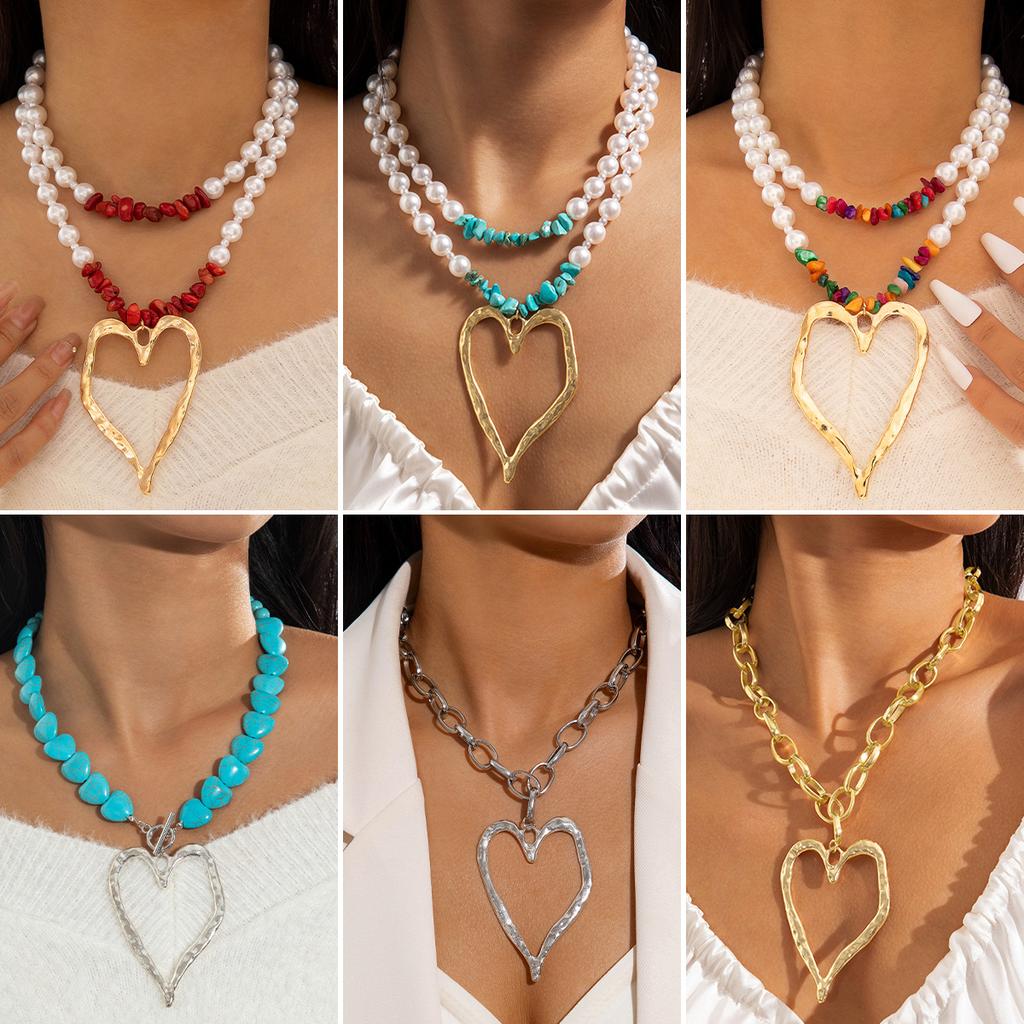 Нишевое ожерелье из бисера с имитацией жемчуга и бирюзы, ретро, преувеличенная подвеска в виде сердца, цепочка для ключицы, многослойное ожерелье