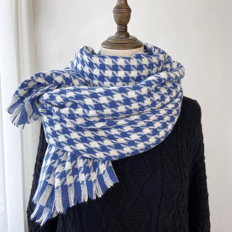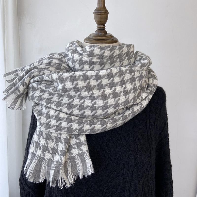 Клетчатый шарф Женский Зимний Новый Шарф Qiandongge Имитация Кашемира Теплая Шаль с Бахромой Утолщенный