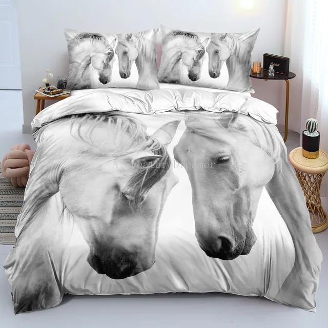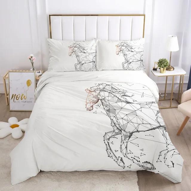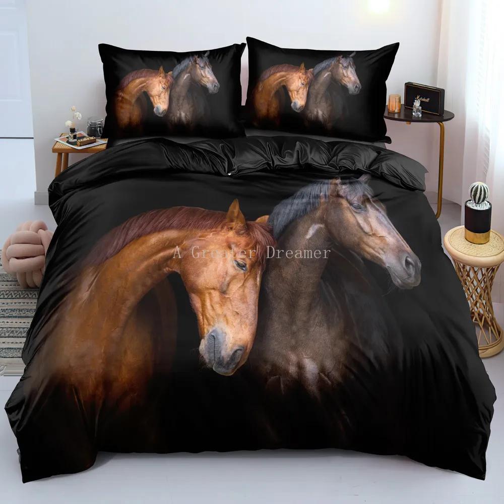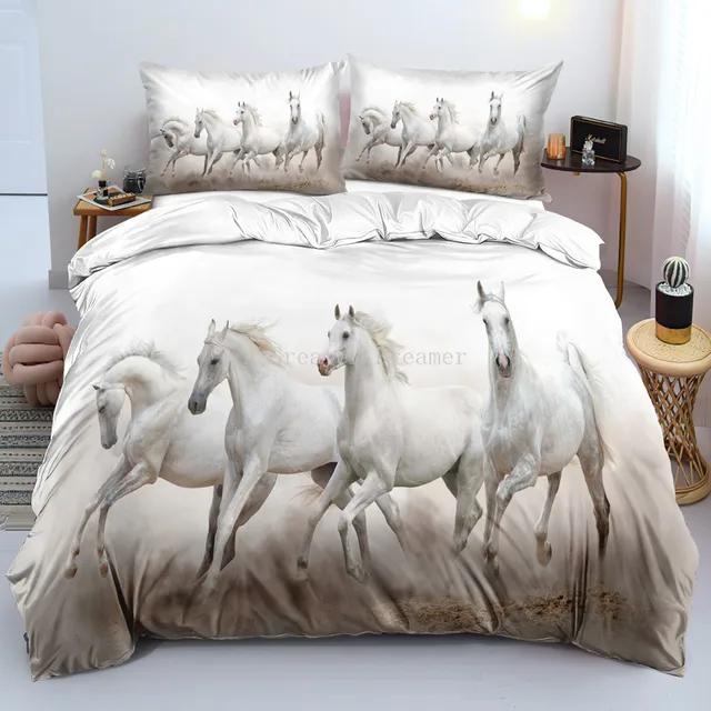 Комплект постельного белья с принтом лошадей Твин Фул Куин Кинг Пододеяльник Набор чехлов для одеяла Мягкое стеганое покрывало Наволочка Животные Постельное белье для подарка