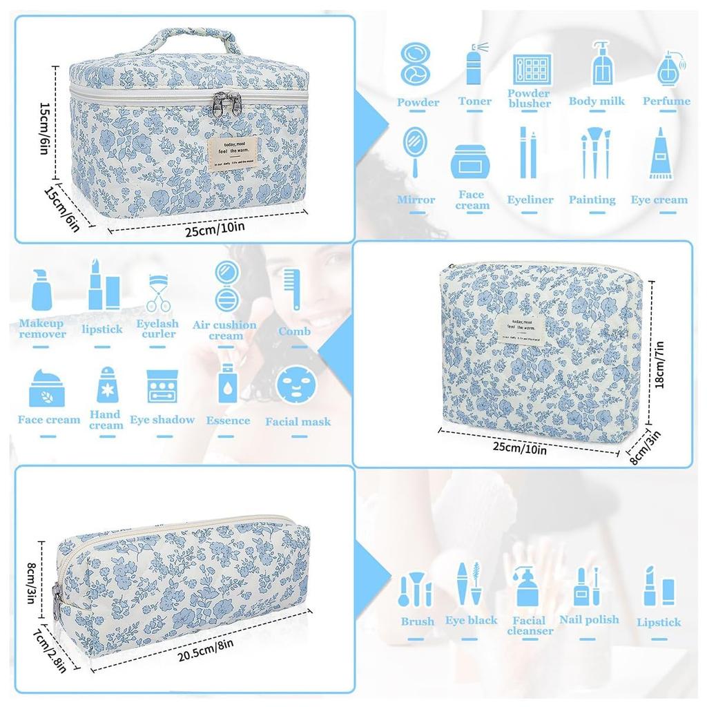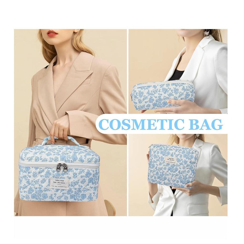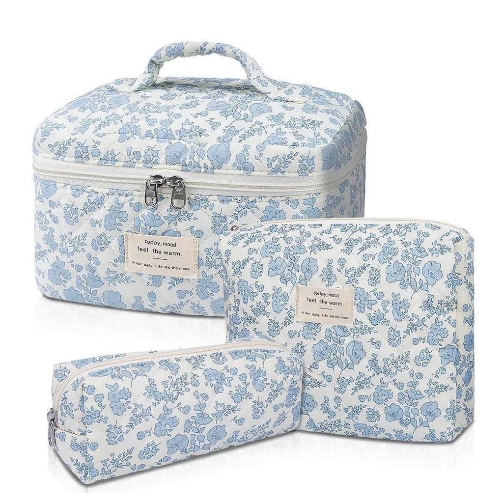 Цветочная косметичка стеганая косметичка большой вместимости дорожная косметичка набор синий набор, косметичка, 3,