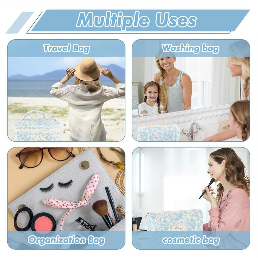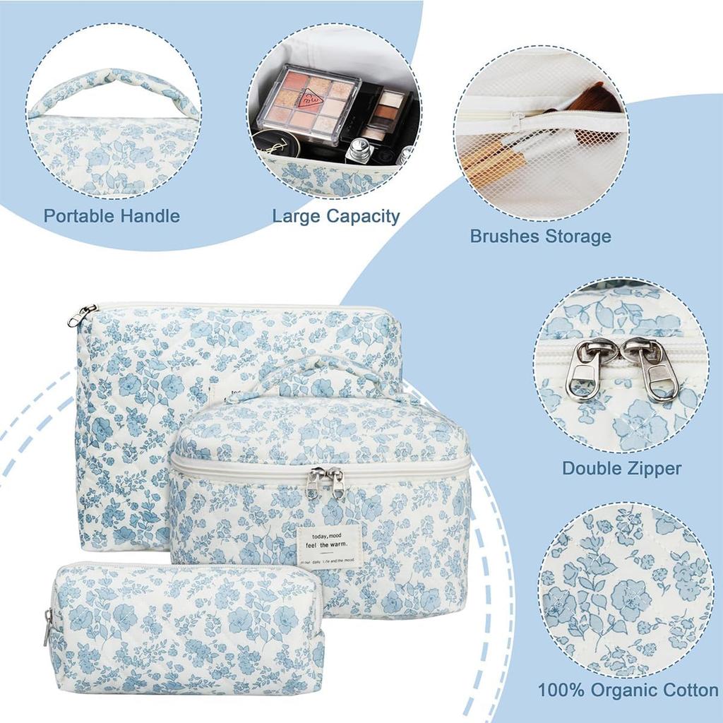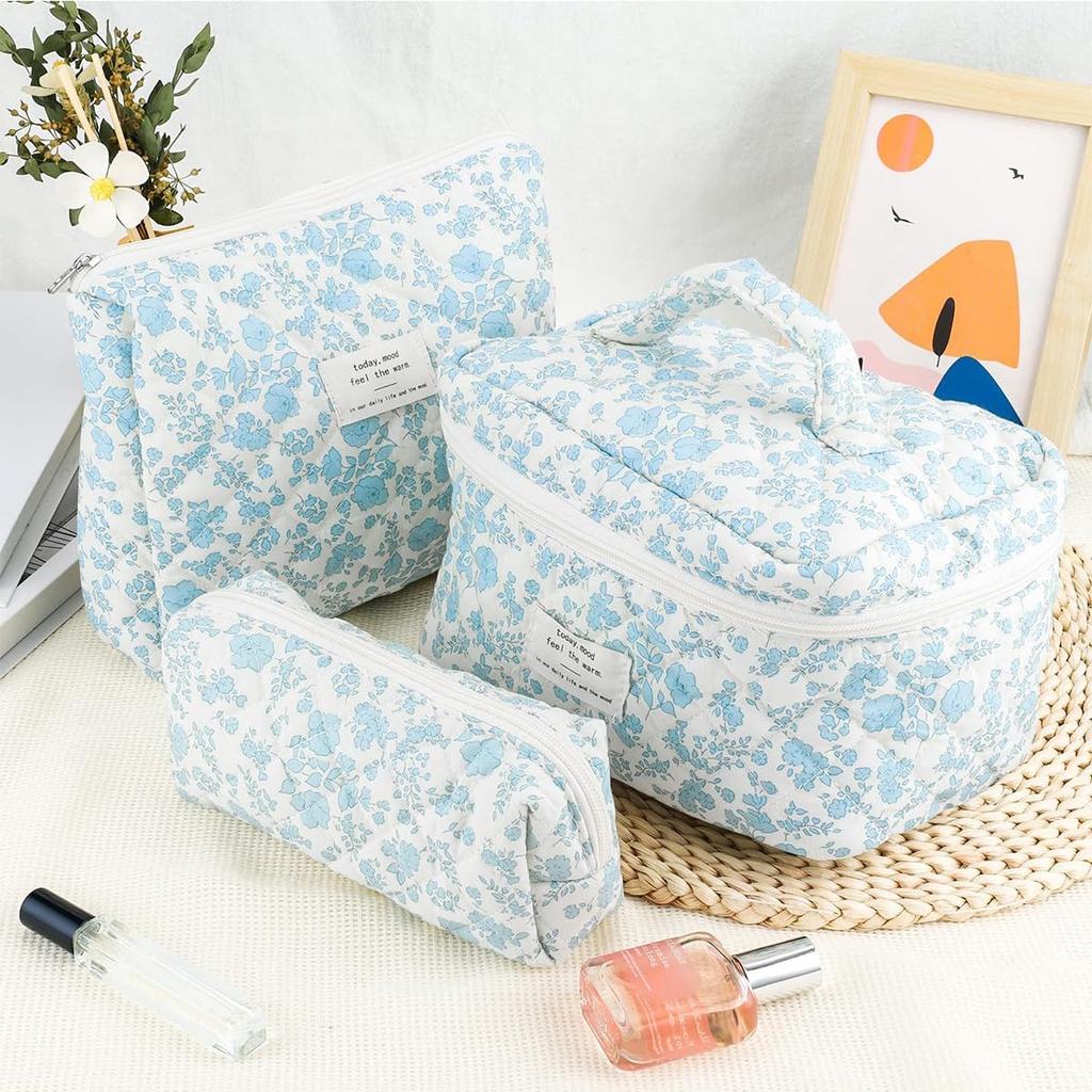 Цветочная косметичка стеганая косметичка большой вместимости дорожная косметичка набор синий набор, косметичка, 3,