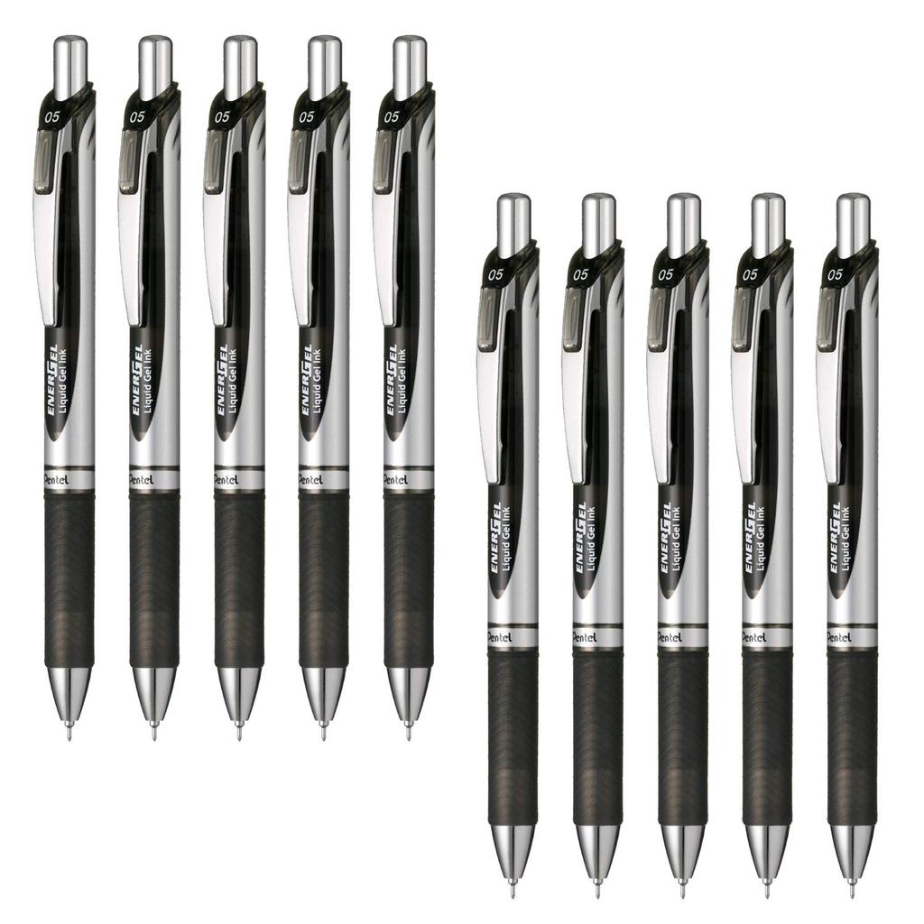 Pentel Гелевая ручка Energel Knock Шариковая Серебристая 10 Ручек Ручка, 0,5 мм, Корпус, Черный, BLN75Z-A,