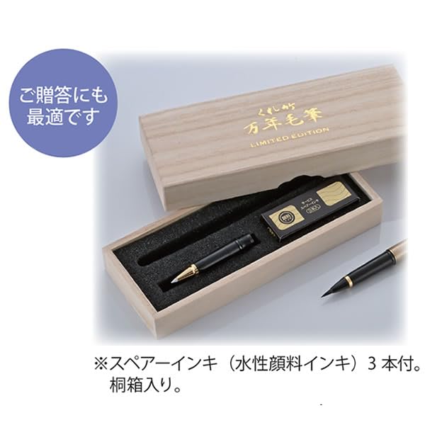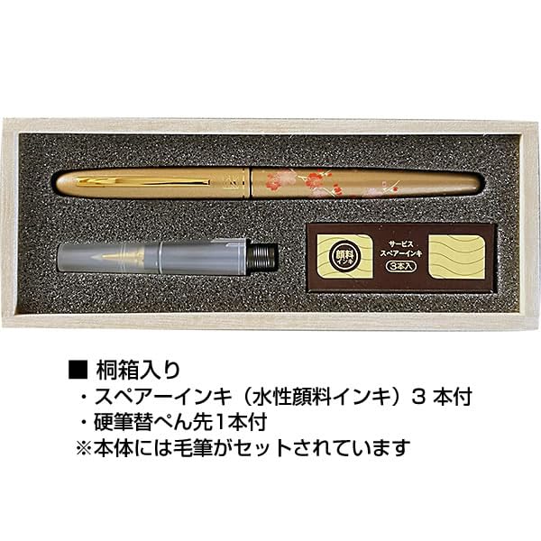 Kuretake Ручка-кисть с твердым стержнем Дизайн «Цветущая сакура» Деревянная коробка из павловнии с 3 запасными чернилами Наконечник, (DU193-50),