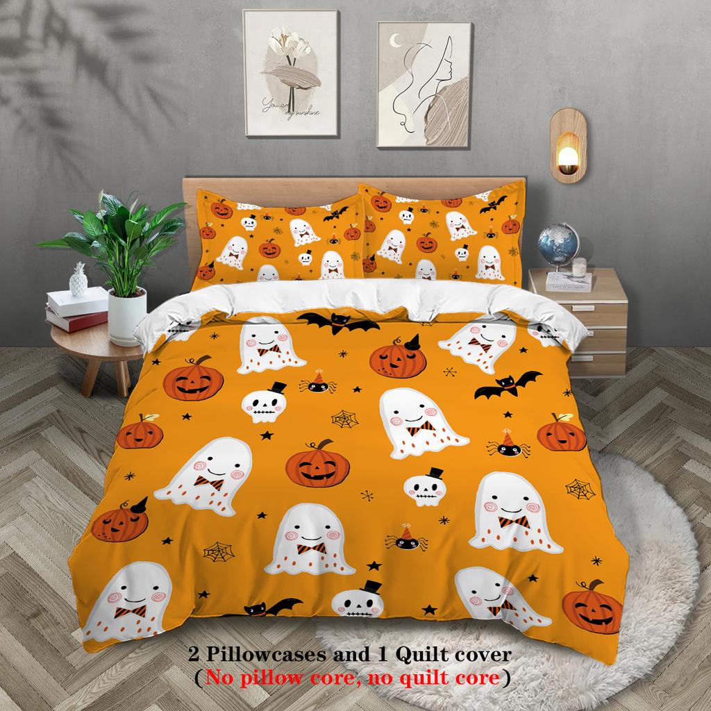 3-предметный пододеяльник с милым узором привидений на тему Хэллоуина (Комплект из 1 предмета + 2 наволочки, без наполнителя) комплект постельного белья для пары