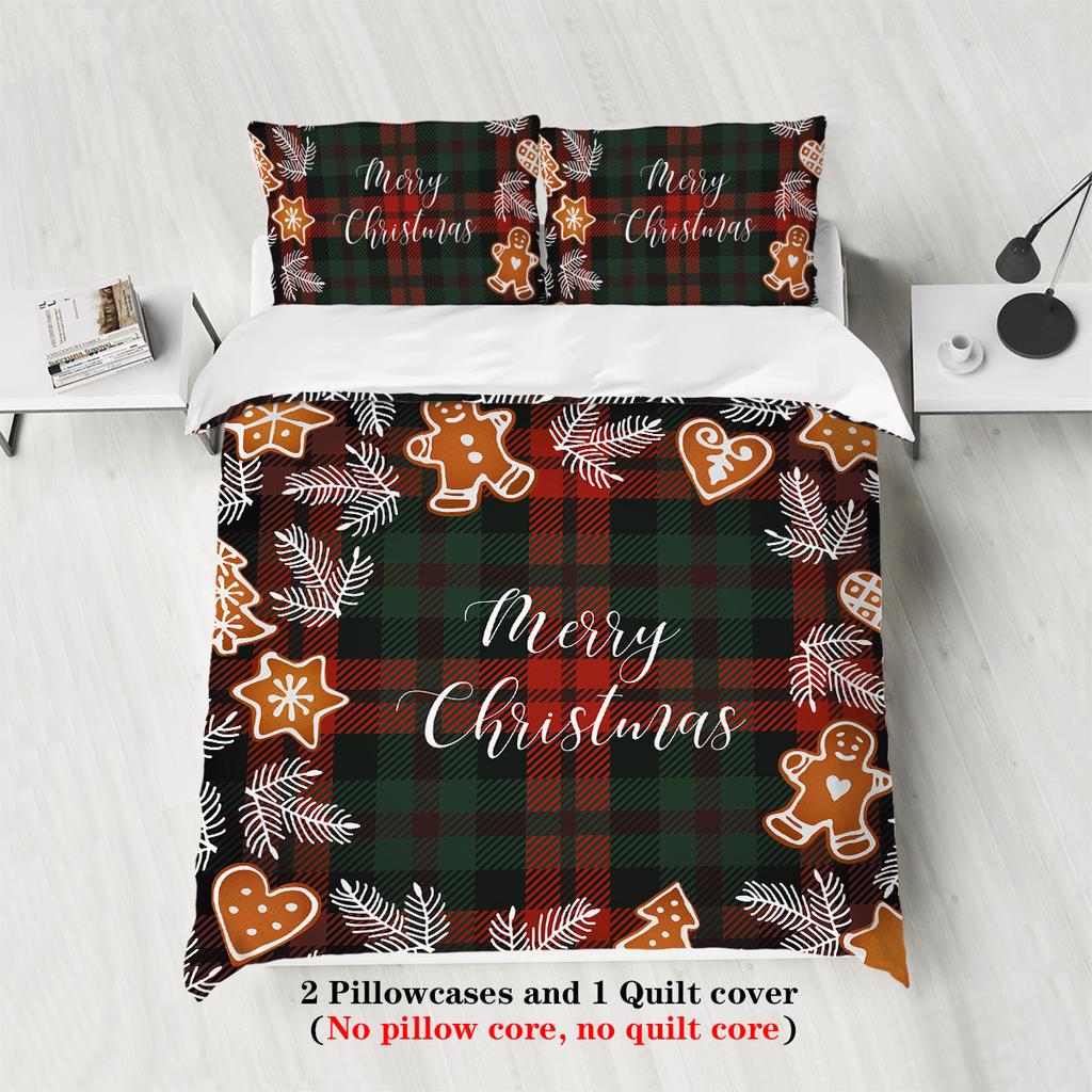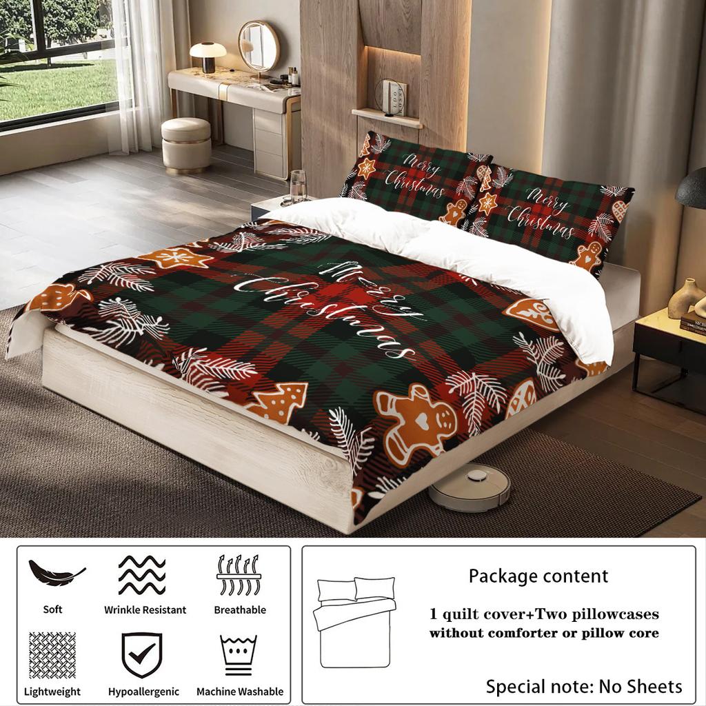 Красная клетка с рождественской тематикой, принт с рождественским узором Happy English (1 пододеяльник+2 наволочки, без наполнителя) комплект постельного белья
