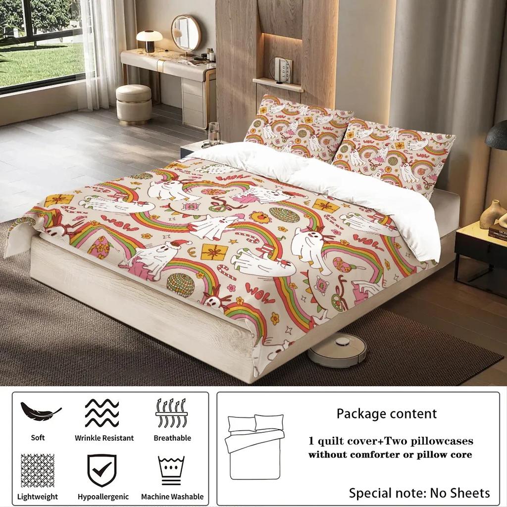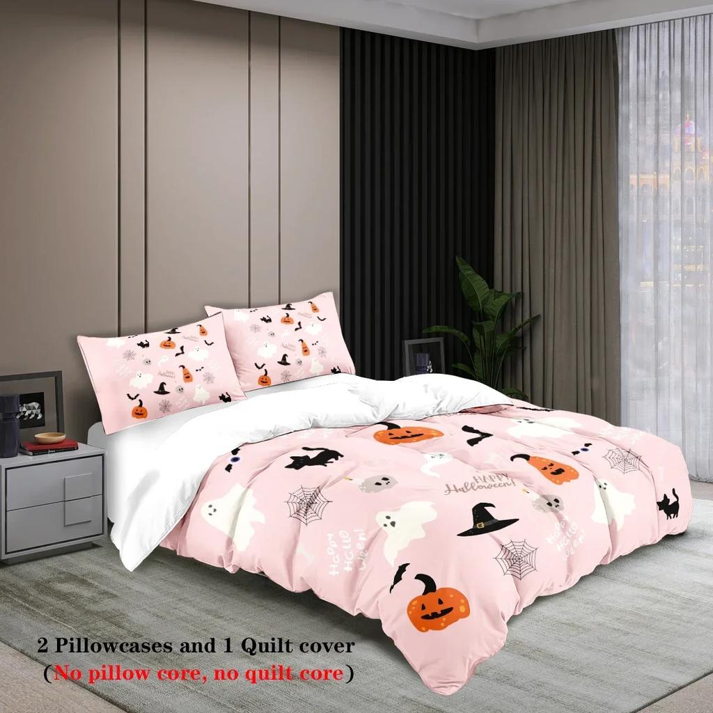 Трехпредметный пуховый пододеяльник с принтом милых привидений на тему Хэллоуина (1 пододеяльник+2 наволочки, без наполнителя) комплект постельного белья