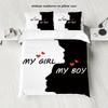 Набор из 3 предметов: пуховый пододеяльник и 2 наволочки, черно-белый цвет, с принтом губ и бороды для пар (1 пододеяльник+2 наволочки, без наполнителя