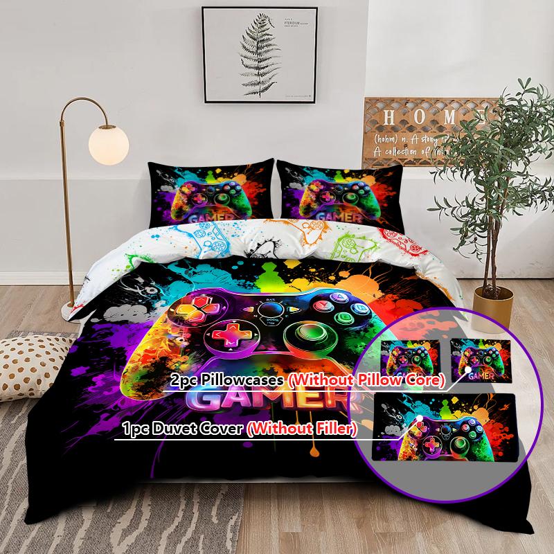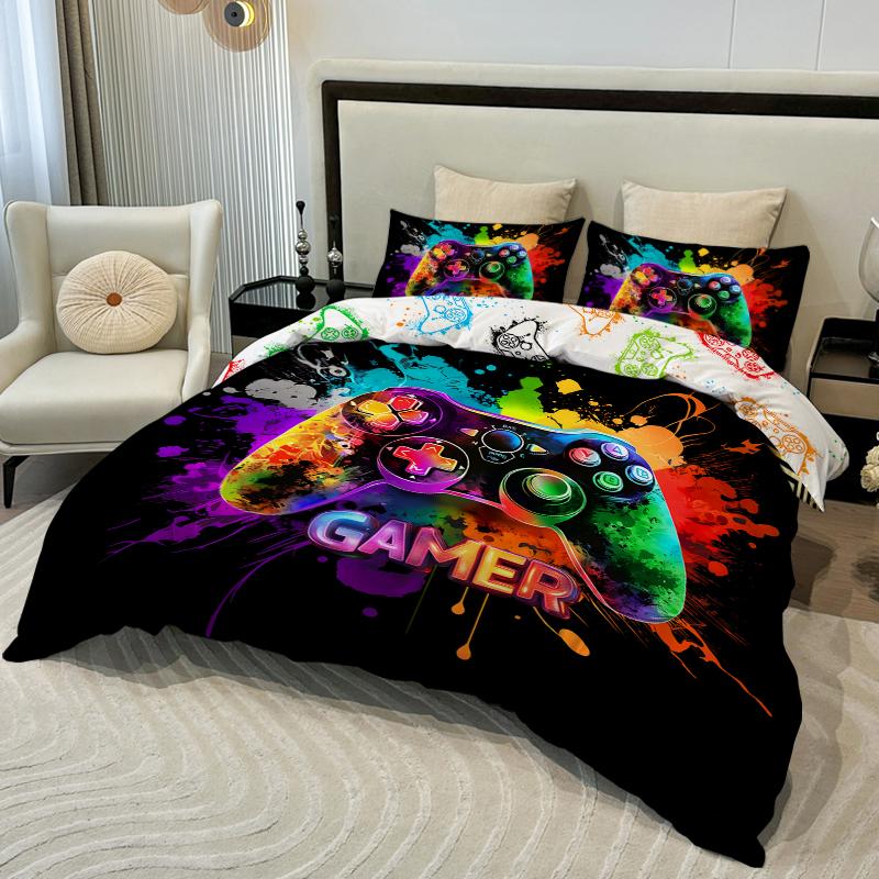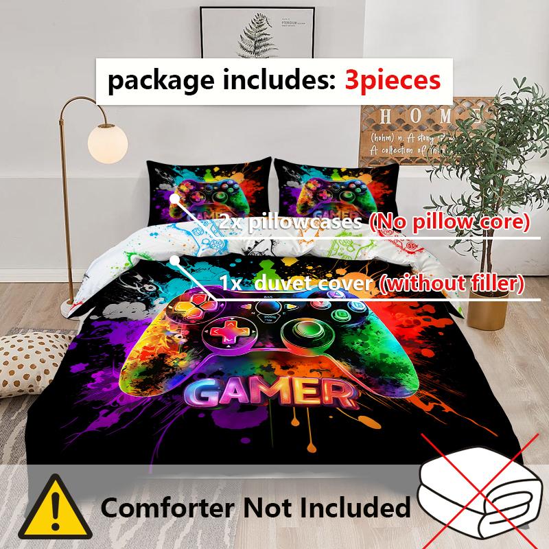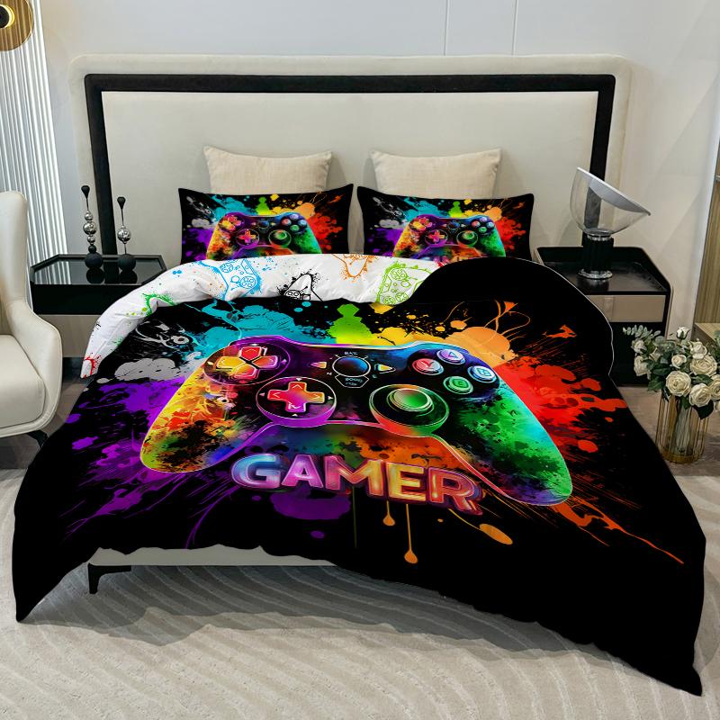 3 предмета, пододеяльник для игровой консоли масляного цвета, 1 пододеяльник + 2 наволочки, технология цифровой печати, удобная и мягкая ткань