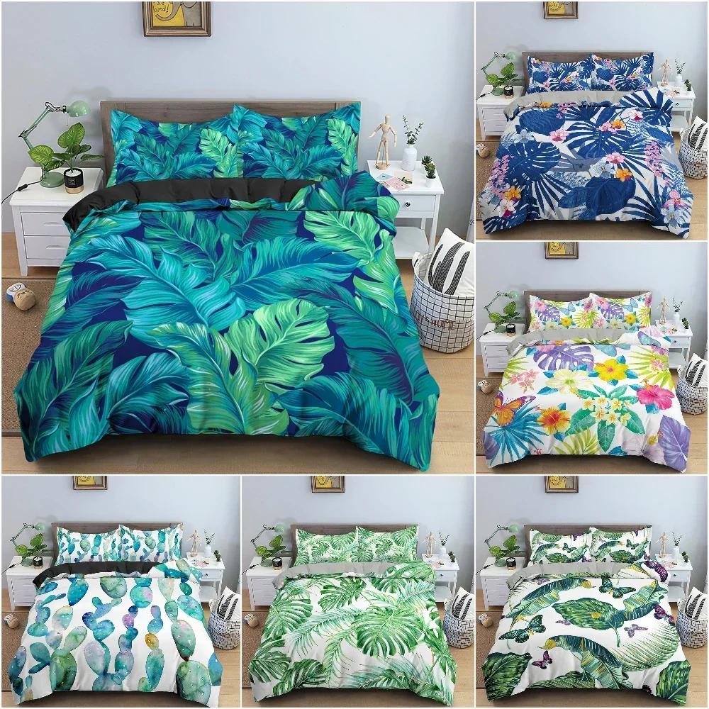 3D тропические листья растений комплект постельного белья пододеяльник для спальни роскошный пододеяльник с наволочкой двуспальное постельное белье для двоих
