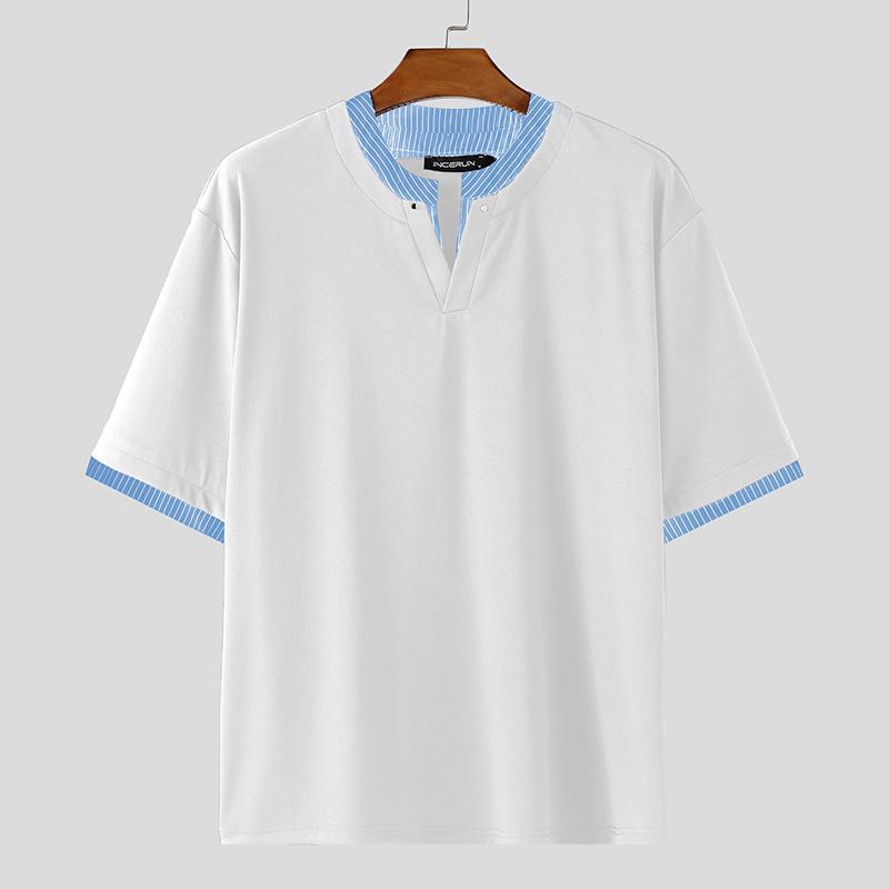 INCERUN Мужские футболки с коротким рукавом, повседневные, в полоску, пэчворк, оверсайз