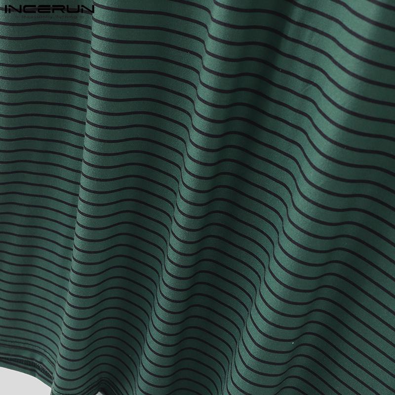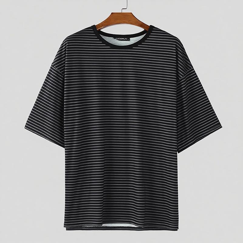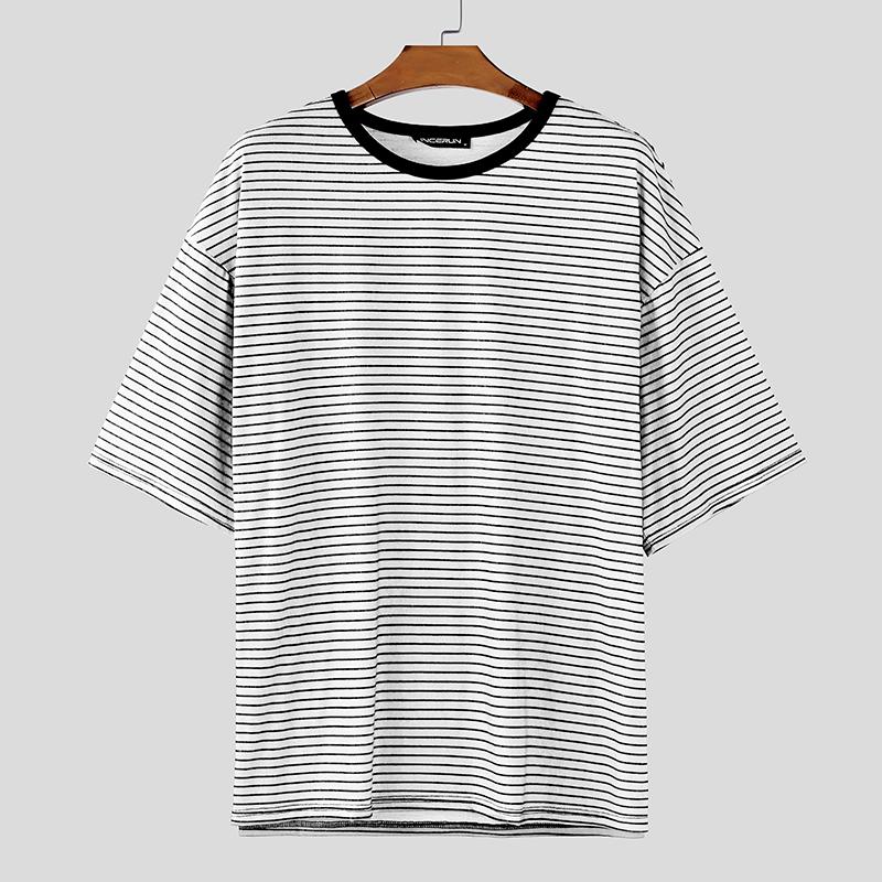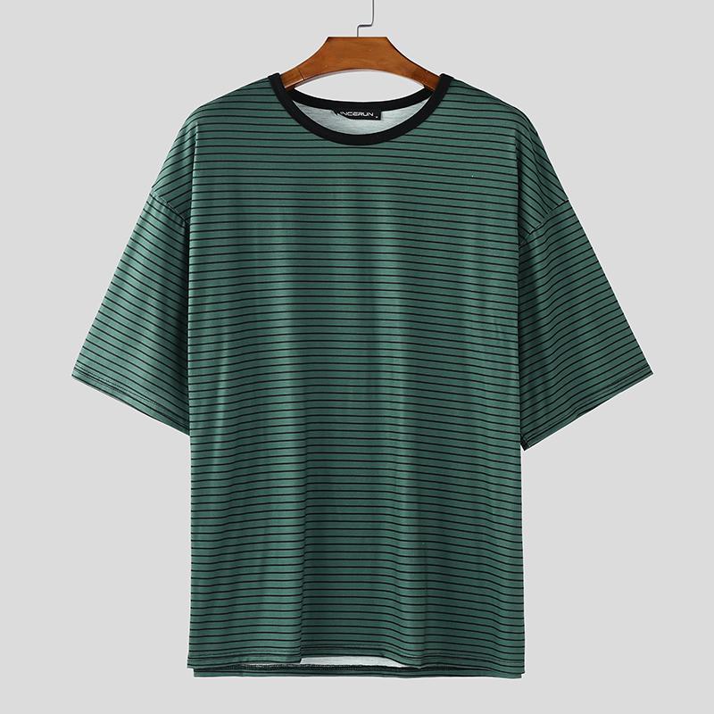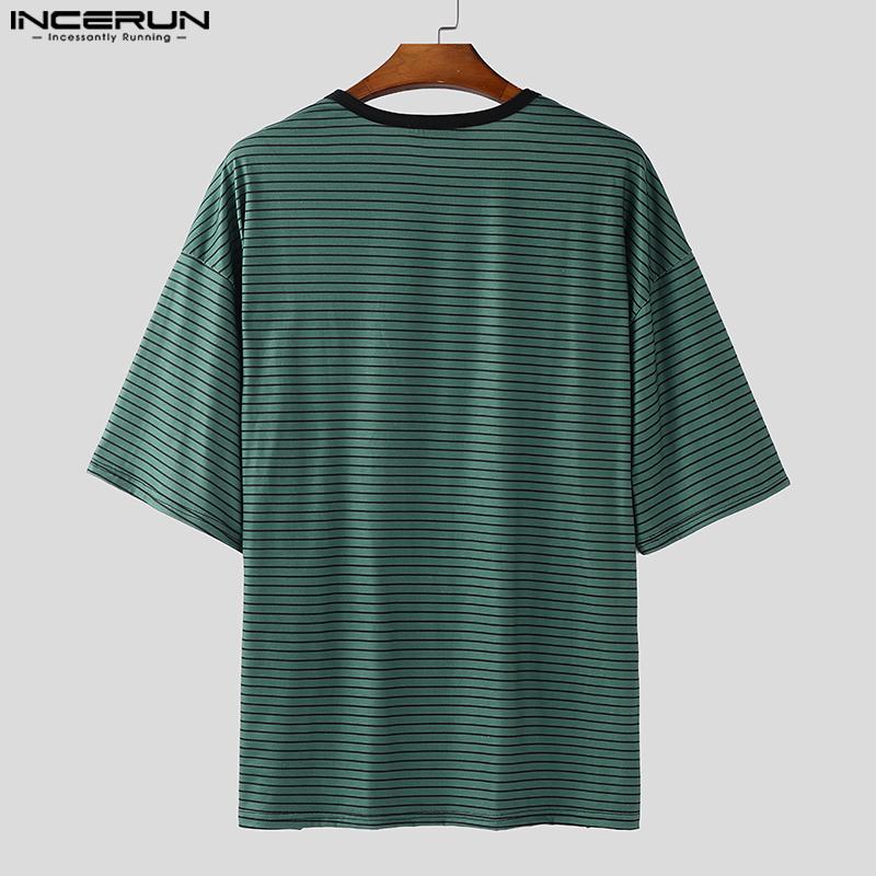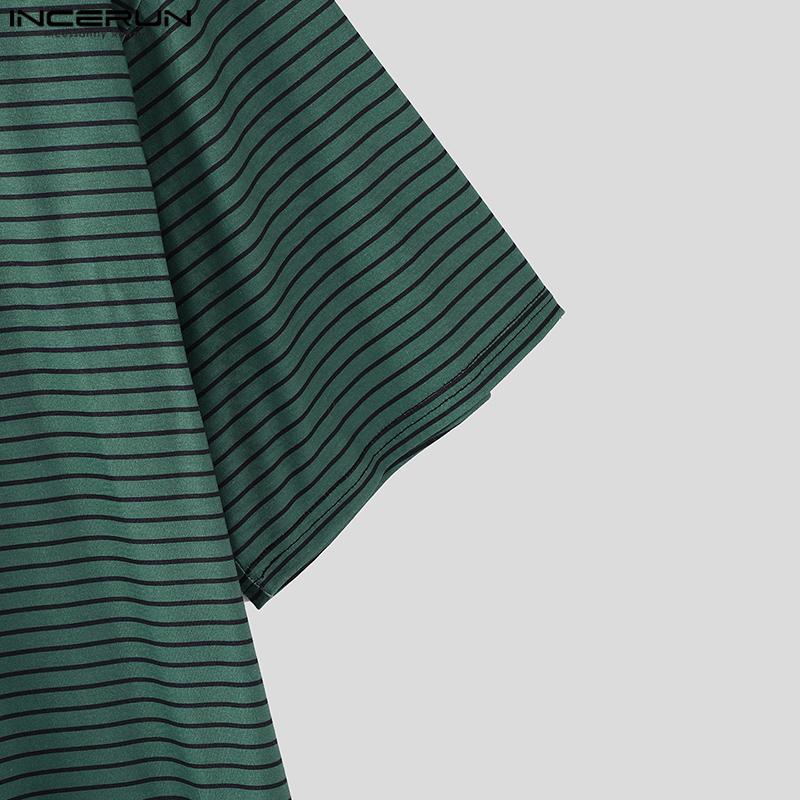 INCERUN Мужские футболки оверсайз с круглым вырезом, коротким рукавом и полосатым принтом в стиле кэжуал