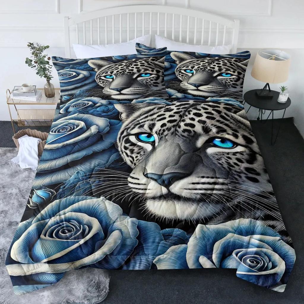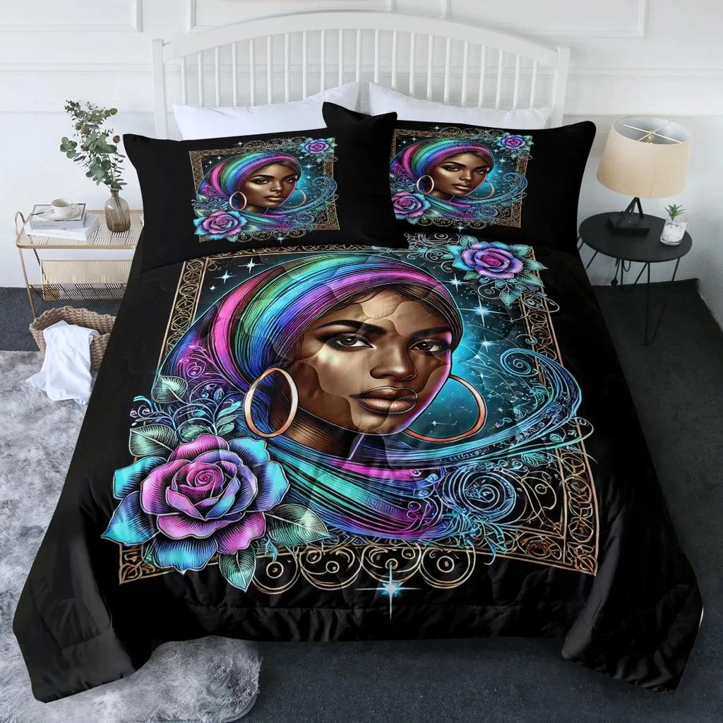 3 предмета Комплекты постельного белья «Голубая роза Снежный леопард» Черная женщина с большими серьгами Комплект для кровати Одеяло с одеялом и 2 наволочками