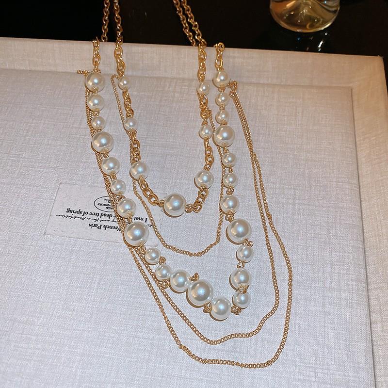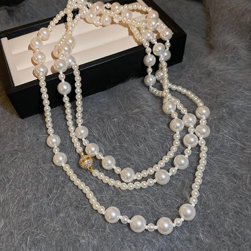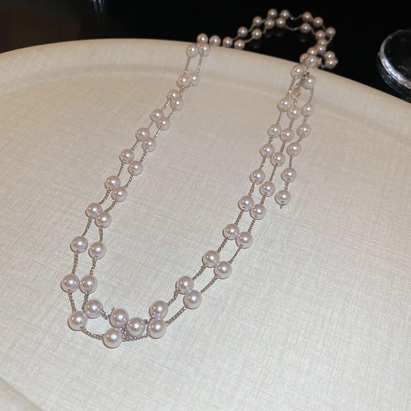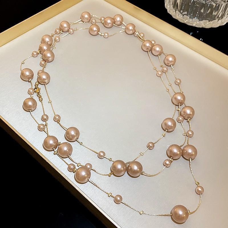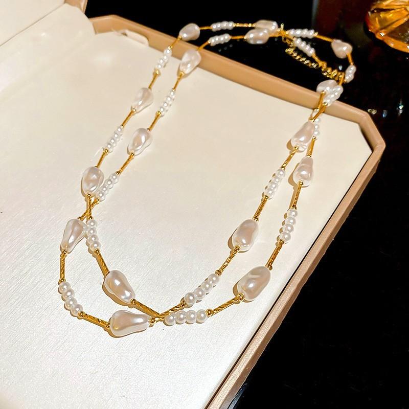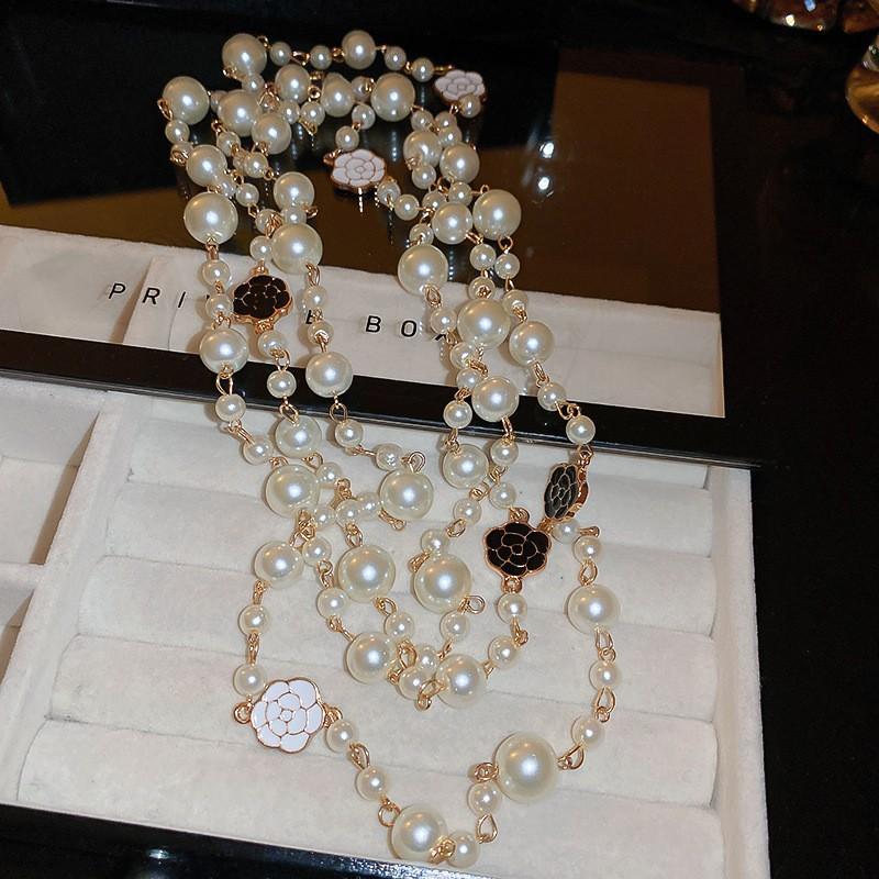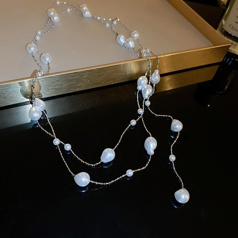 Бриллиантовое ожерелье из жемчуга в форме капли воды, осенне-зимняя французская цепочка для свитера в стиле легкой роскоши, модное универсальное высококлассное ювелирное изделие