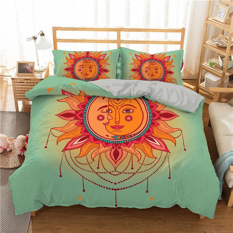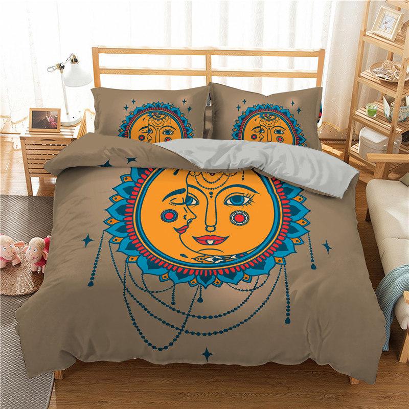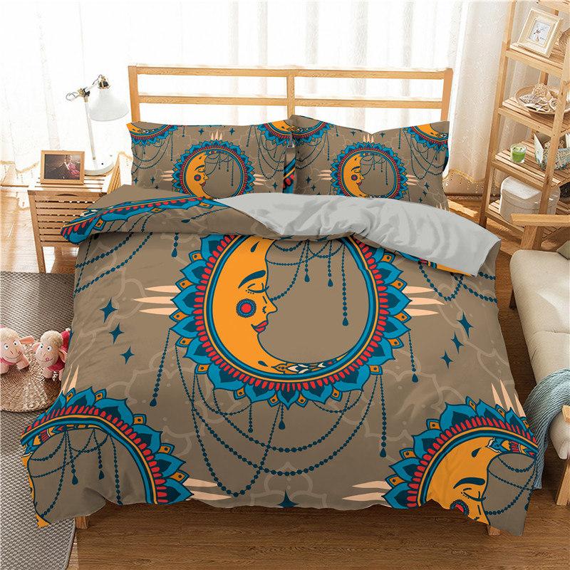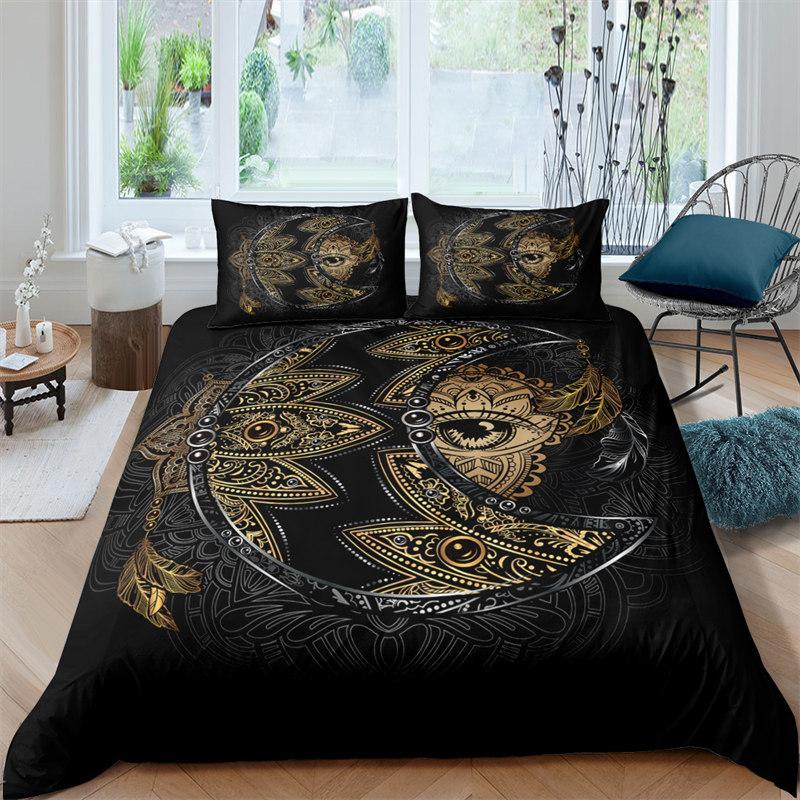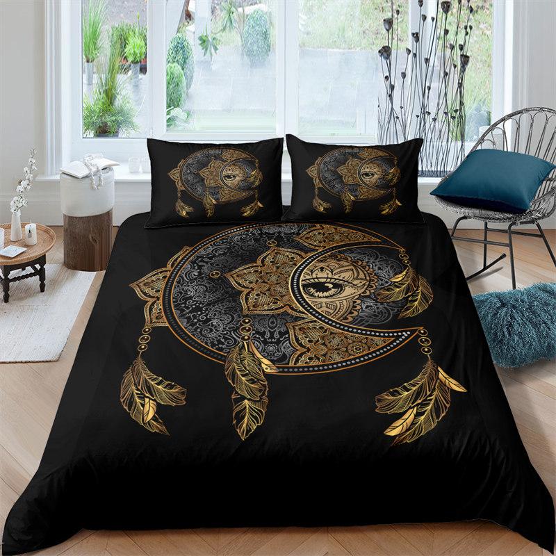 Пододеяльник в стиле богемной мандалы с принтом золотого солнца и луны в формате 3D King Queen Комплект постельного белья из микрофибры Ловец снов Пододеяльник Наволочка