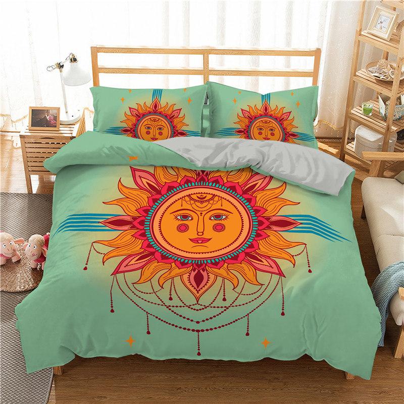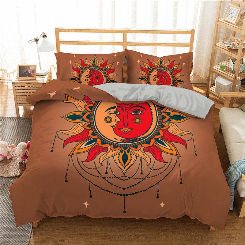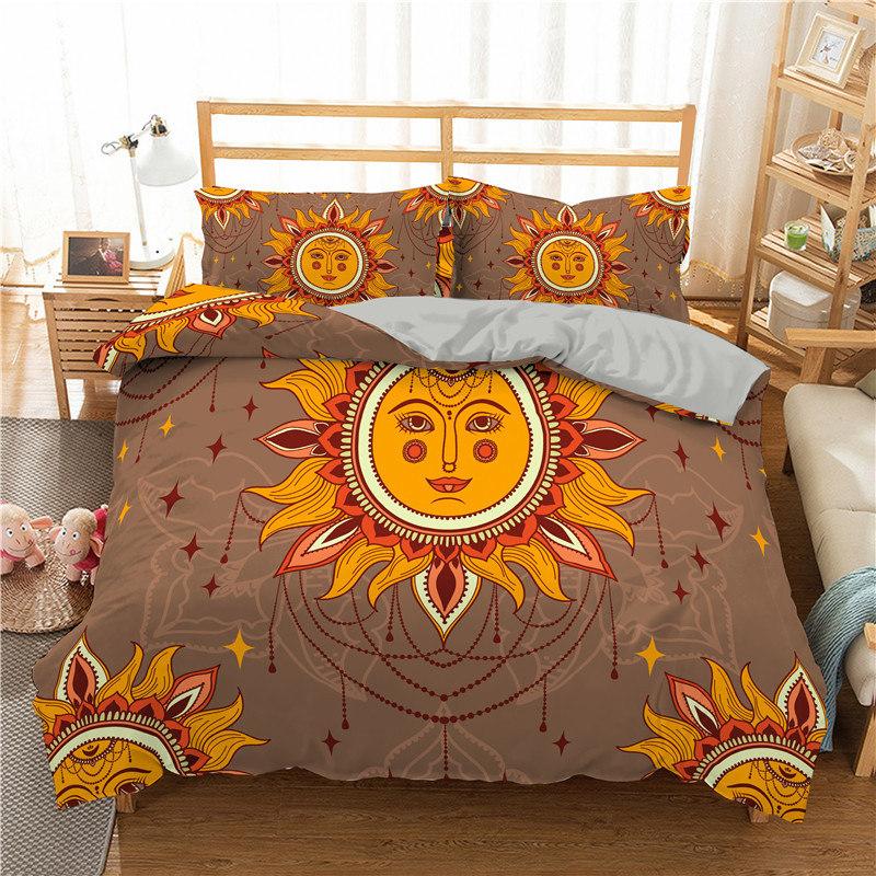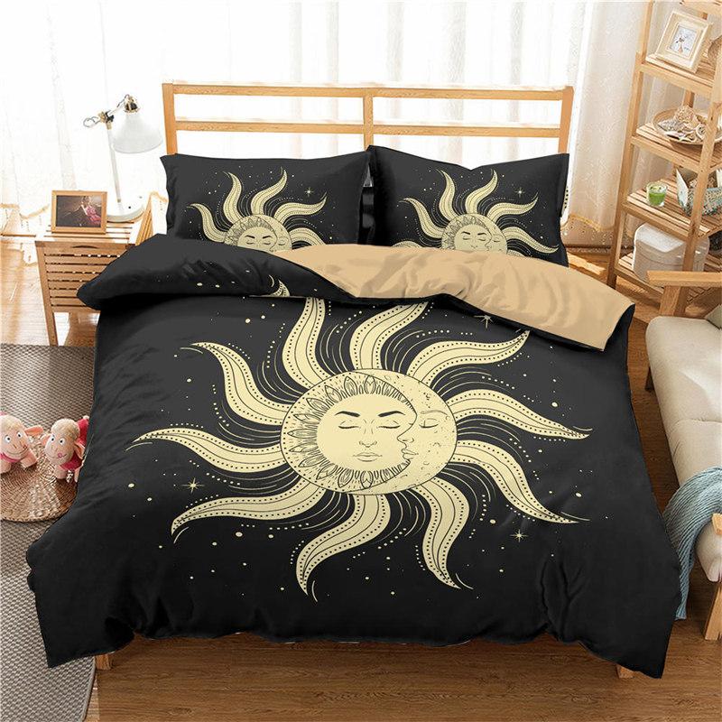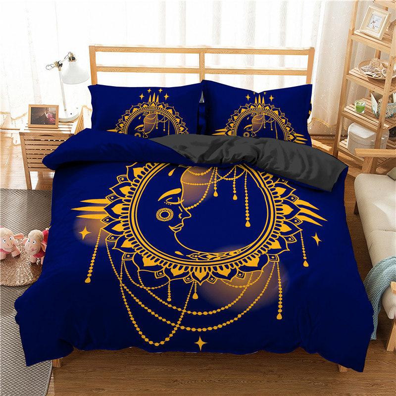 Пододеяльник в стиле богемной мандалы с принтом золотого солнца и луны в формате 3D King Queen Комплект постельного белья из микрофибры Ловец снов Пододеяльник Наволочка