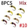 6/8 шт. 2 размеров Нимфа личинки ручейника с головкой из бусинки Реалистичный жук-бокоплав Червь для ловли форели и хариуса (Крючок с бородкой, Быстро тонущий)
