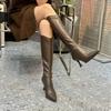 Модные рыцарские сапоги на тонком каблуке для женщин 2024 новый стиль острый носок осенние молния высокие каблуки не выше колена длинные сапоги