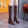 Винтажные зимние женские ботфорты до колена, модные туфли на высоком каблуке с острым носком, лаконичные длинные женские боты