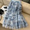 Qooth Женская А-силуэтная юбка из тюля с градиентом и оборками, широкий подол, средней длины, эластичная талия, повседневная юбка QT2636