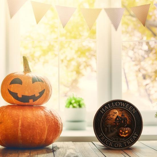 Универсальный элемент декора: Будь то украшение вашего дома, создание атмосферы вечеринки или обогащение праздничных торжеств, эта монета на Хэллоуин станет универсальным дополнением к вашему арсеналу декора.. Идеально для энтузиастов Хэллоуина, стремящихся привнести цвета, вдохновленные ужасом, в свое окружение.