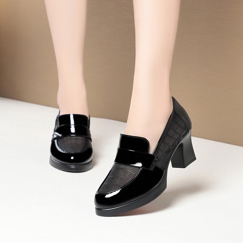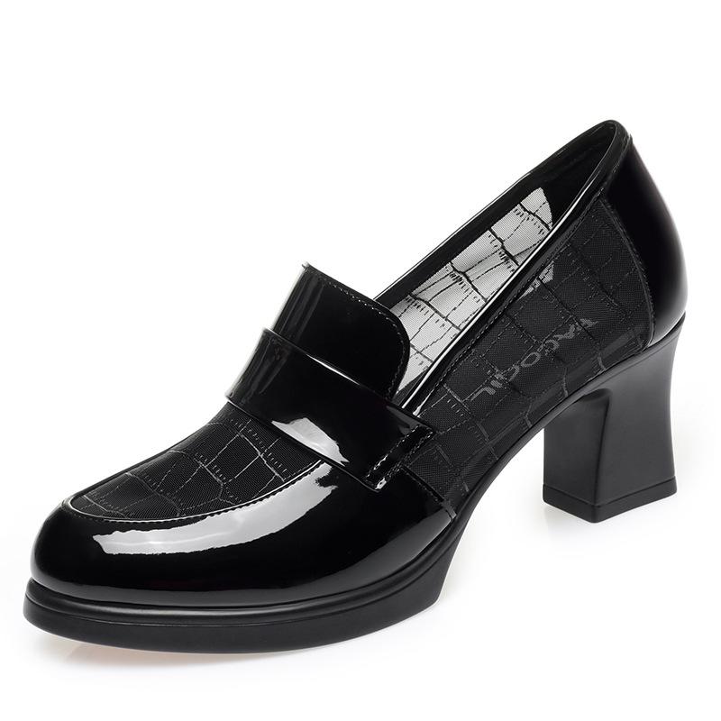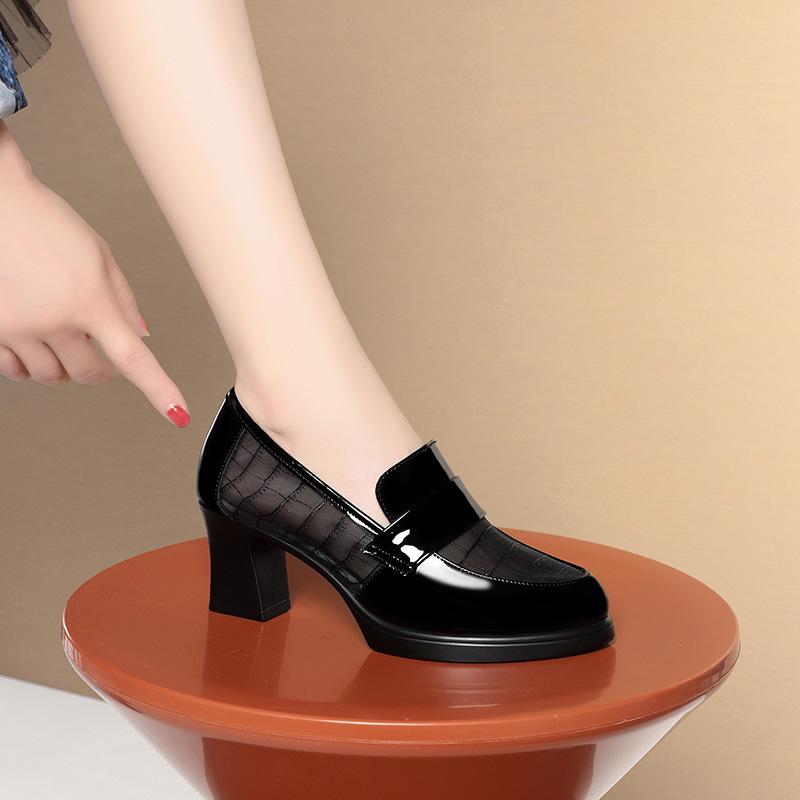 Летние туфли в британском стиле, туфли на высоком каблуке, водонепроницаемая платформа, толстый каблук, лоферы, сетчатые дышащие кожаные туфли для среднего возраста