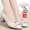 2025 Весна и Осень Туфли-лодочки на среднем каблуке Женские для женщин среднего возраста Туфли из кожи на высоком каблуке с мягкой подошвой для мам