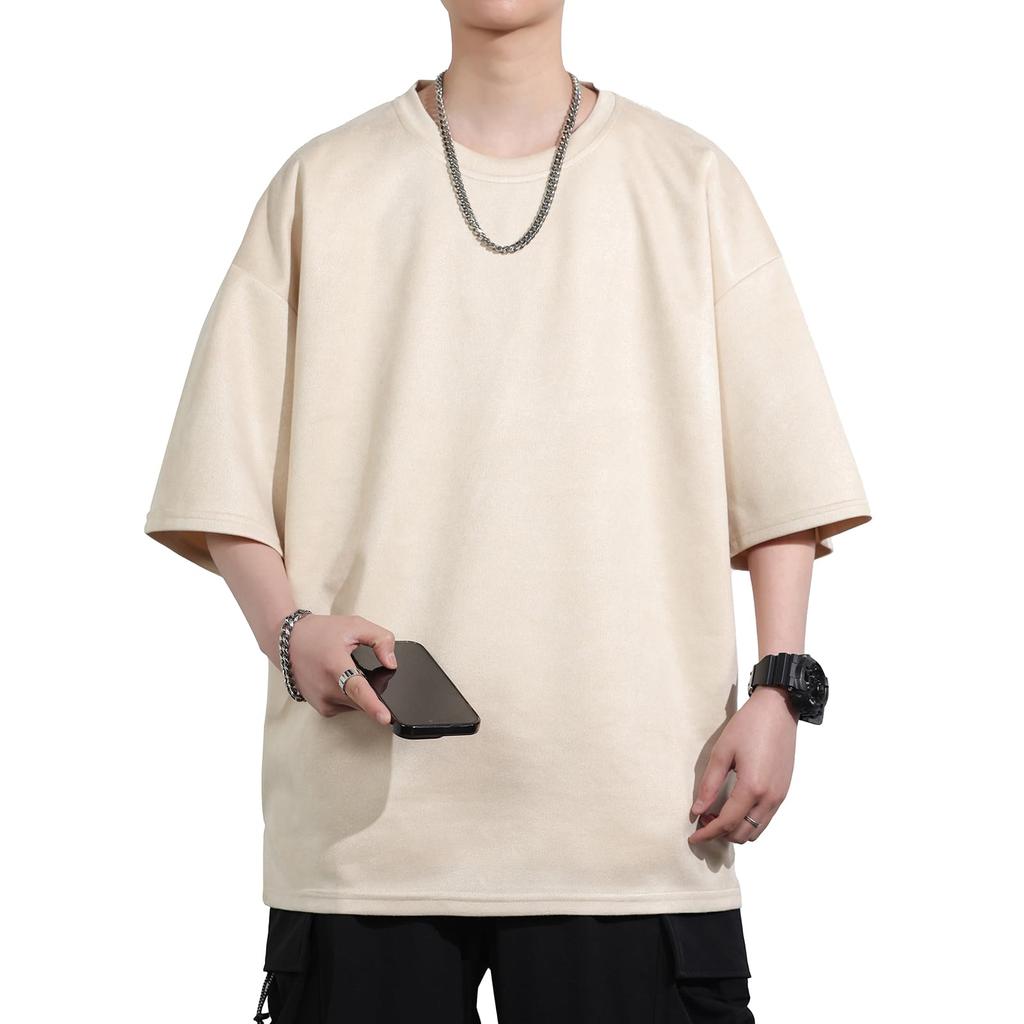 FLYSKY Мужская футболка с коротким рукавом, из искусственной замши, оверсайз, однотонная, свободного кроя, мягкая, Силуэт, Рукав 5/8, Лето, Замша, Цвет, Посадка,