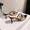 Темпераментные крутые тапочки женские летние новые тонкий каблук сетчатая пряжа горячие бриллианты острый носок открытый носок туфли на высоком каблуке