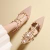Телесные туфли-лодочки женские новые с заклепками полые маленькие кожаные туфли летние для ношения с юбкой босоножки на высоком каблуке