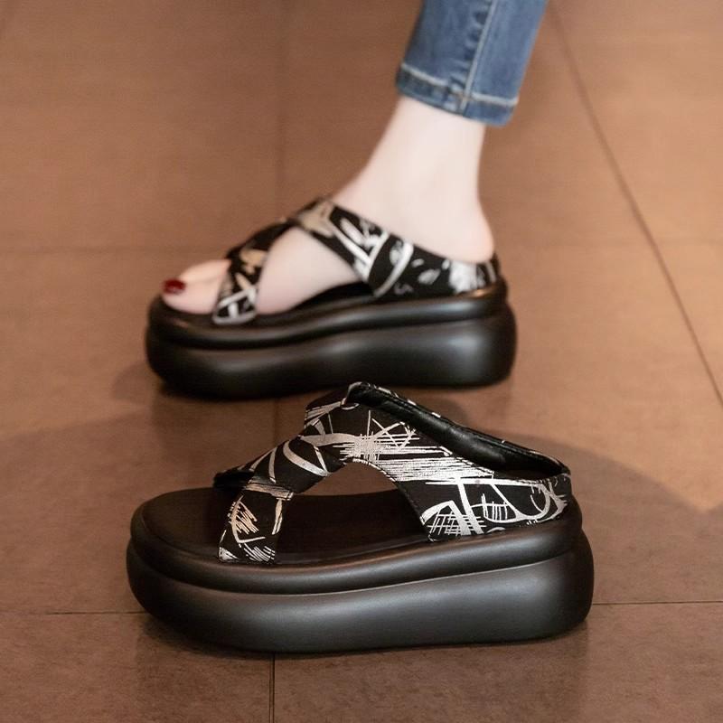 Премиальные крутые шлепанцы на толстой подошве женская обувь летняя одежда новые сандалии на танкетке для пляжа