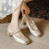 Ретро туфли ципао новые толстый каблук сочетание цветов Мэри Джейн туфли на высоком каблуке одинарные туфли женские
