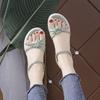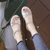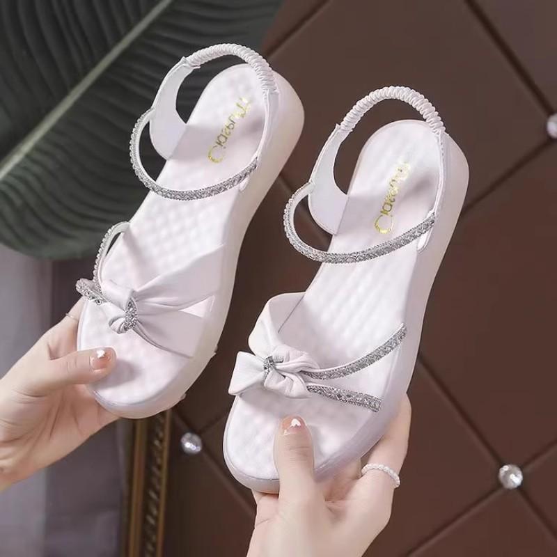 Летние новые кожаные пляжные туфли на плоской подошве с мягкой подошвой, универсальные студенческие эластичные сандалии со стразами