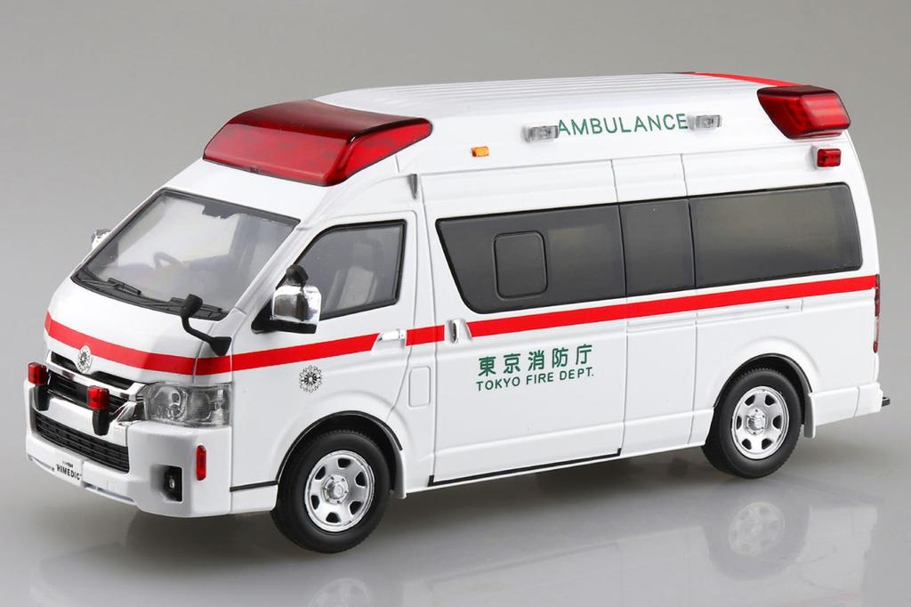 AOSHIMA Масштаб 1/32 Rakupla Сборная модель-защелка № 02-HM Toyota Himedic Скорая помощь, Цветная пластиковая модель